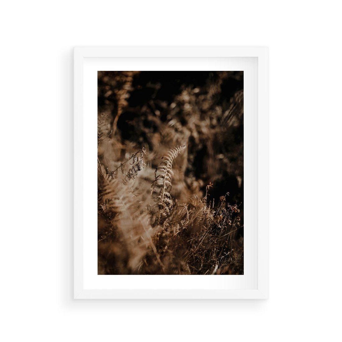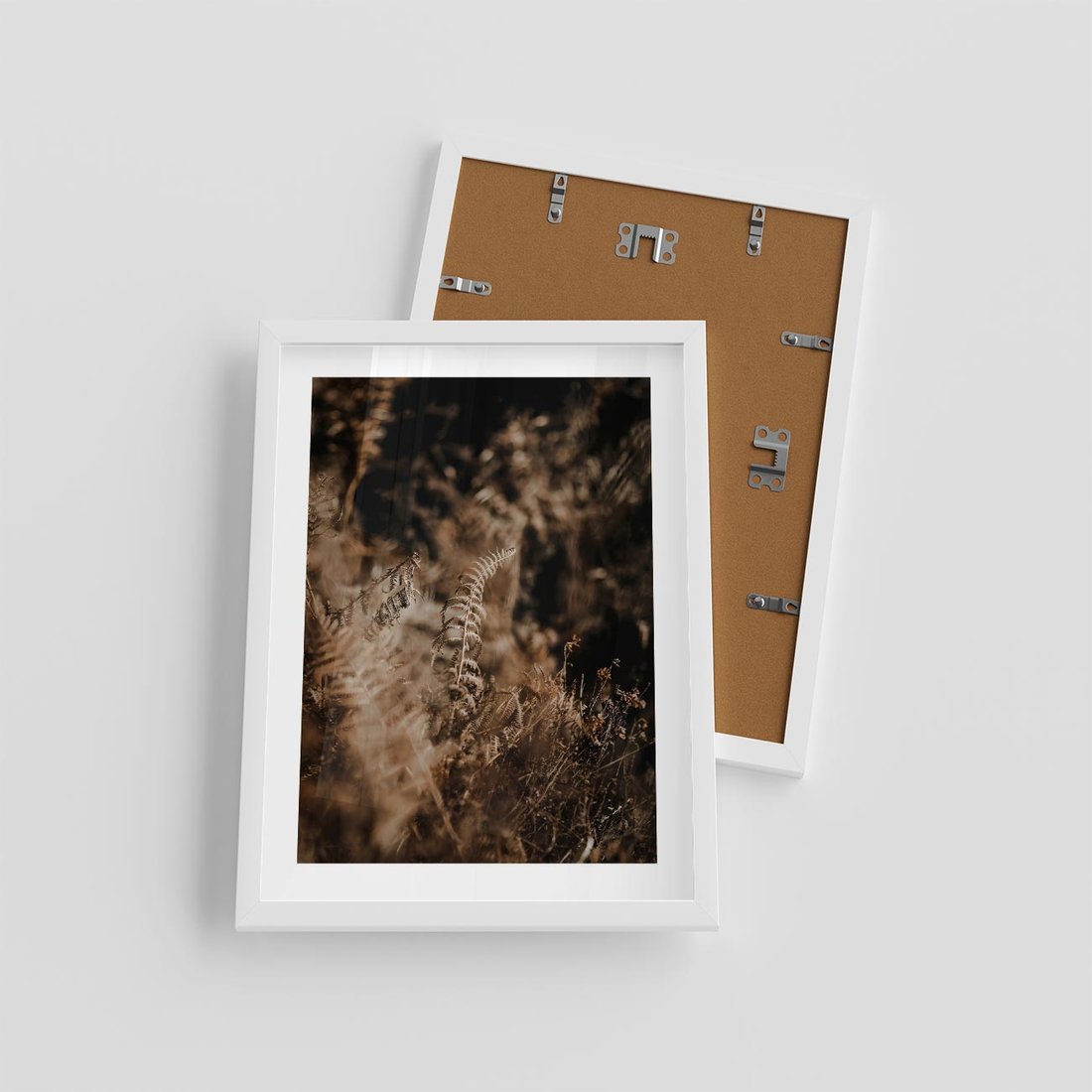 Plakat w ramie 30x40 - Delikatne Detale - paprocie, brąz - rama biała