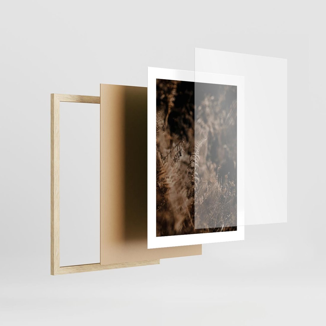 Plakat w ramie 30x40 - Delikatne Detale - paprocie, brąz - rama drewno