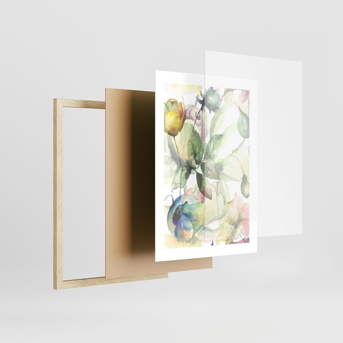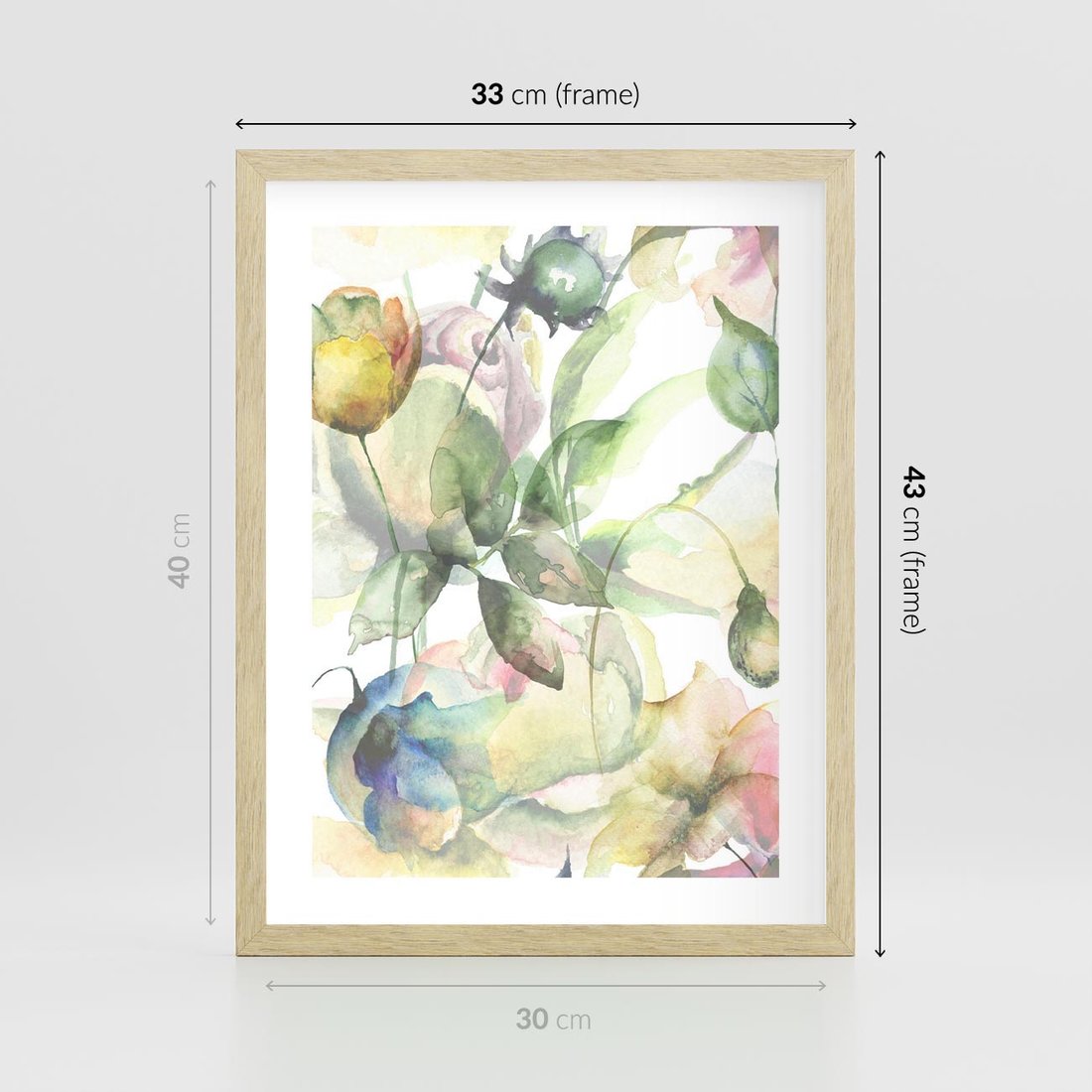 Plakat w ramie 30x40 - Delikatne Kolory - akwarelowe, kwiaty - rama drewno