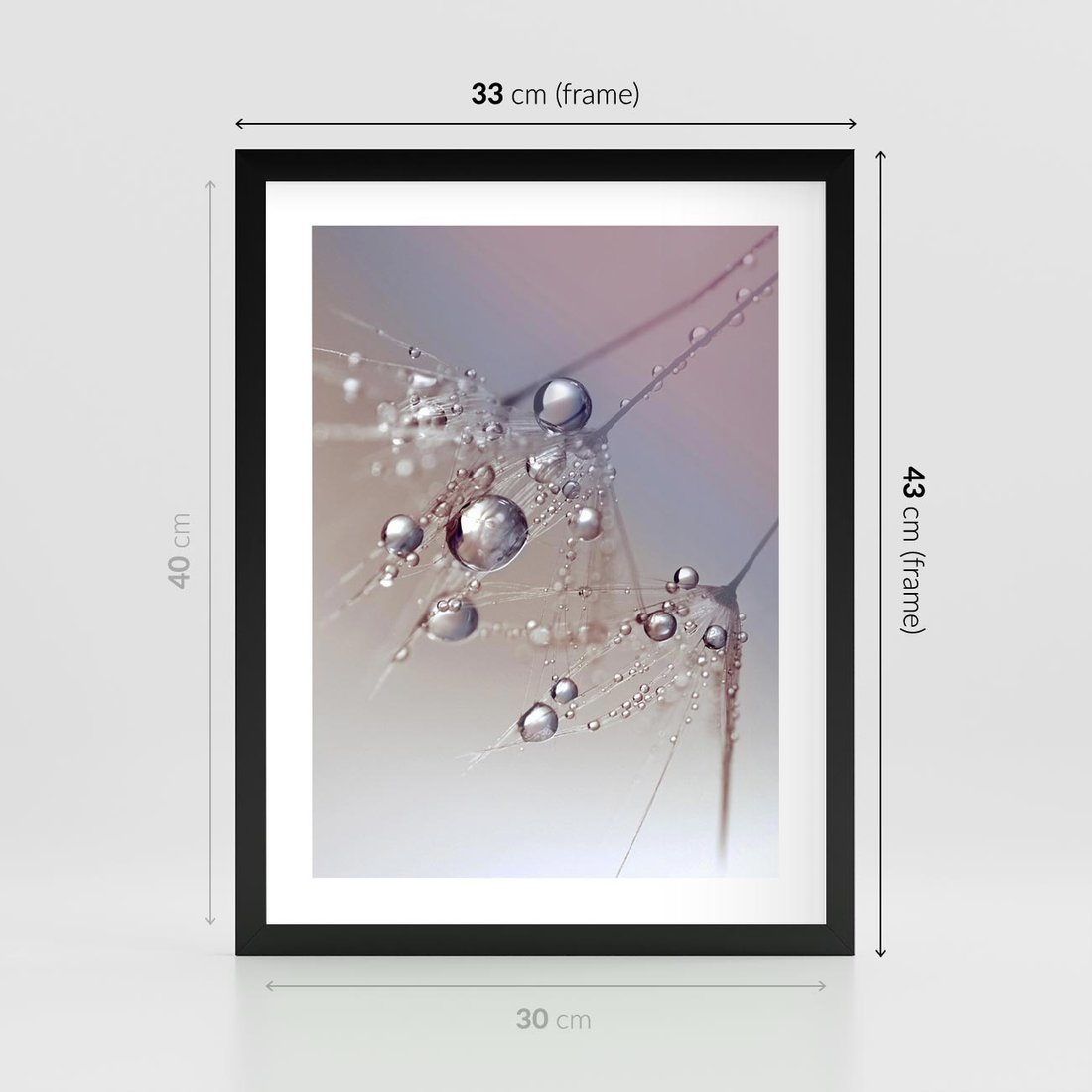 Plakat w ramie 30x40 - Delikatne Natchnienie - krople, dmuchawce - rama czarna