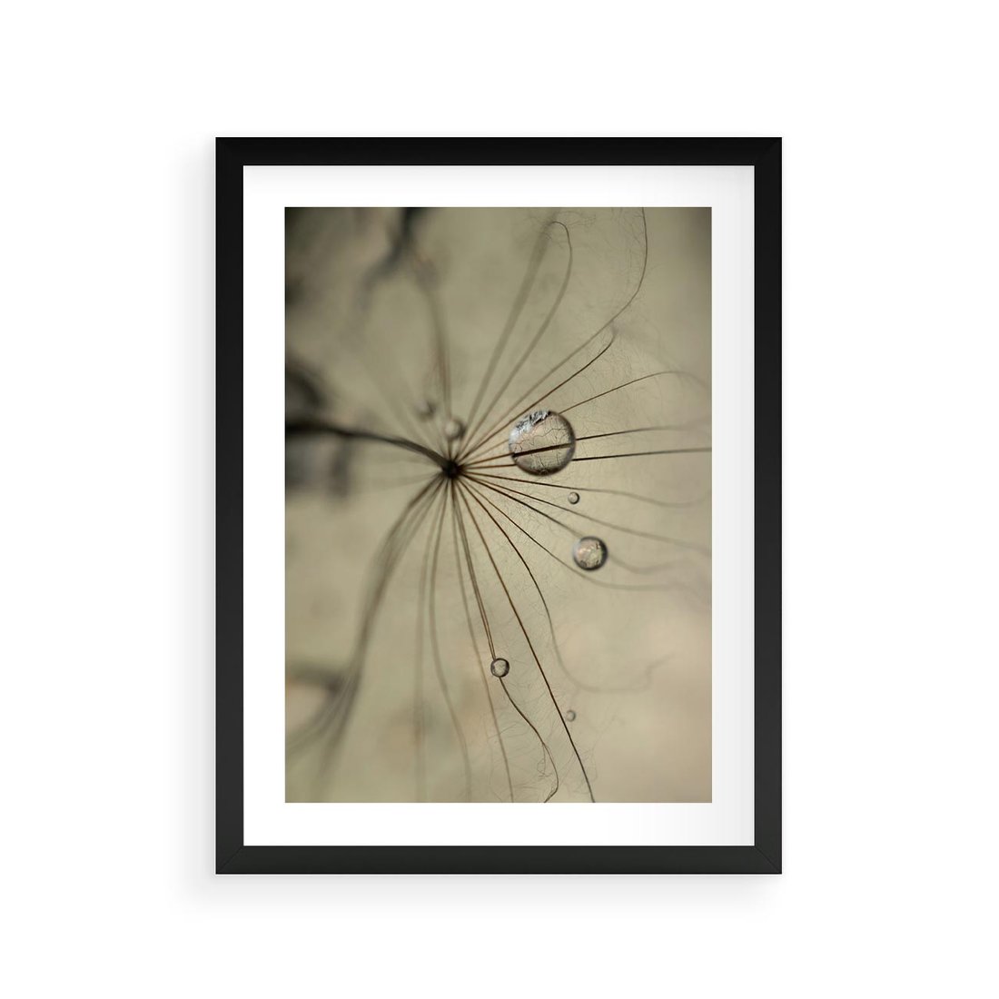 Plakat w ramie 30x40 - Delikatność dmuchawców - dmuchawce, krople - rama czarna