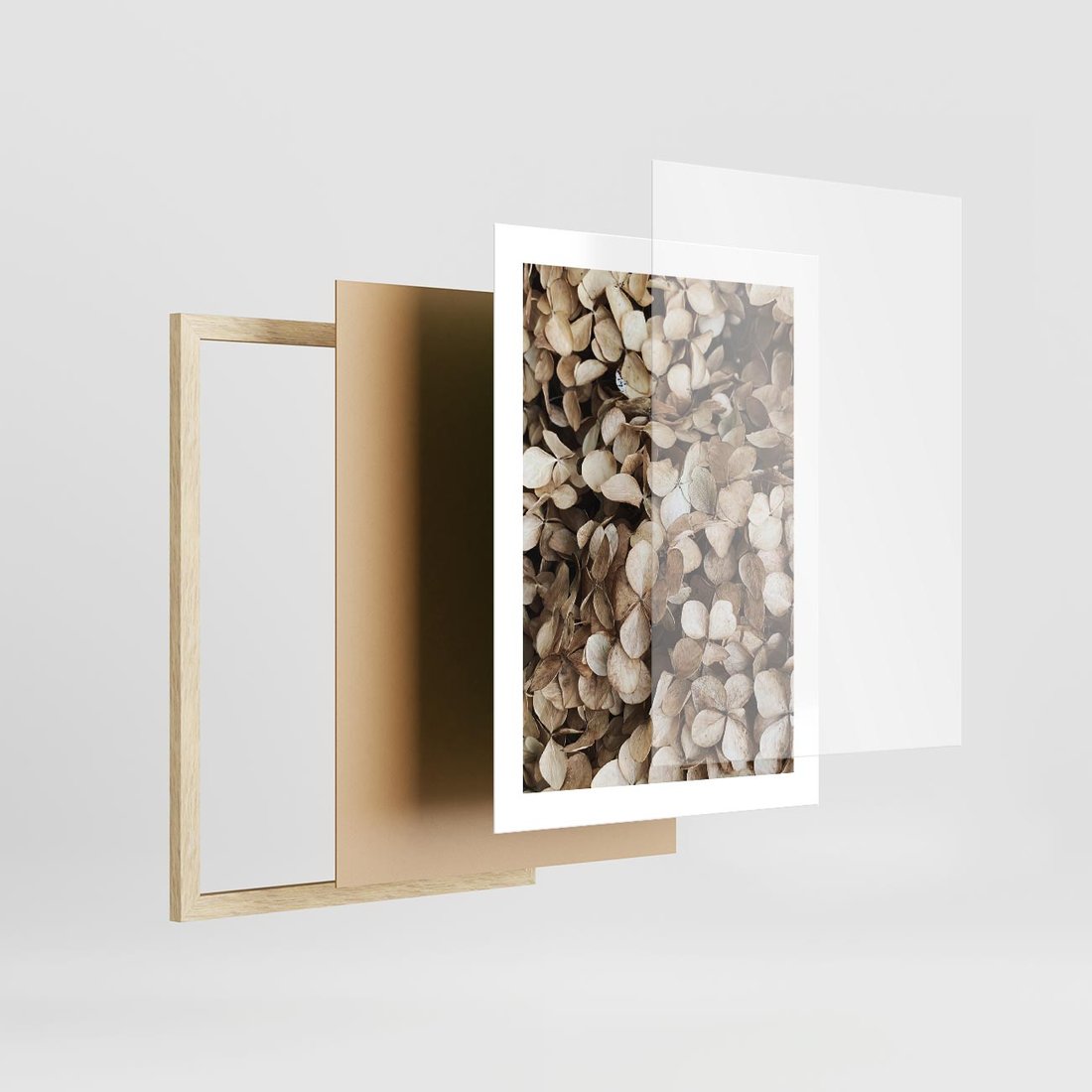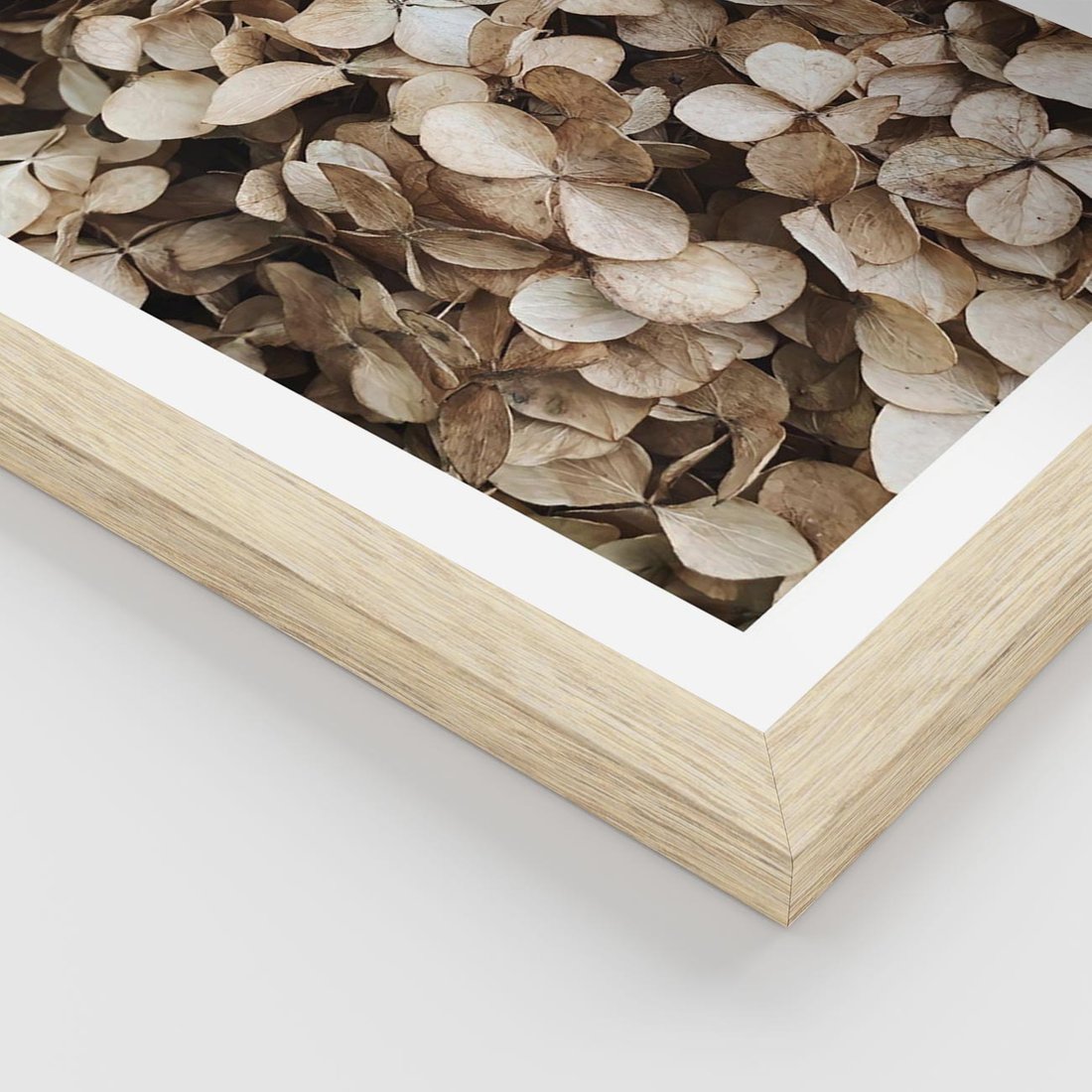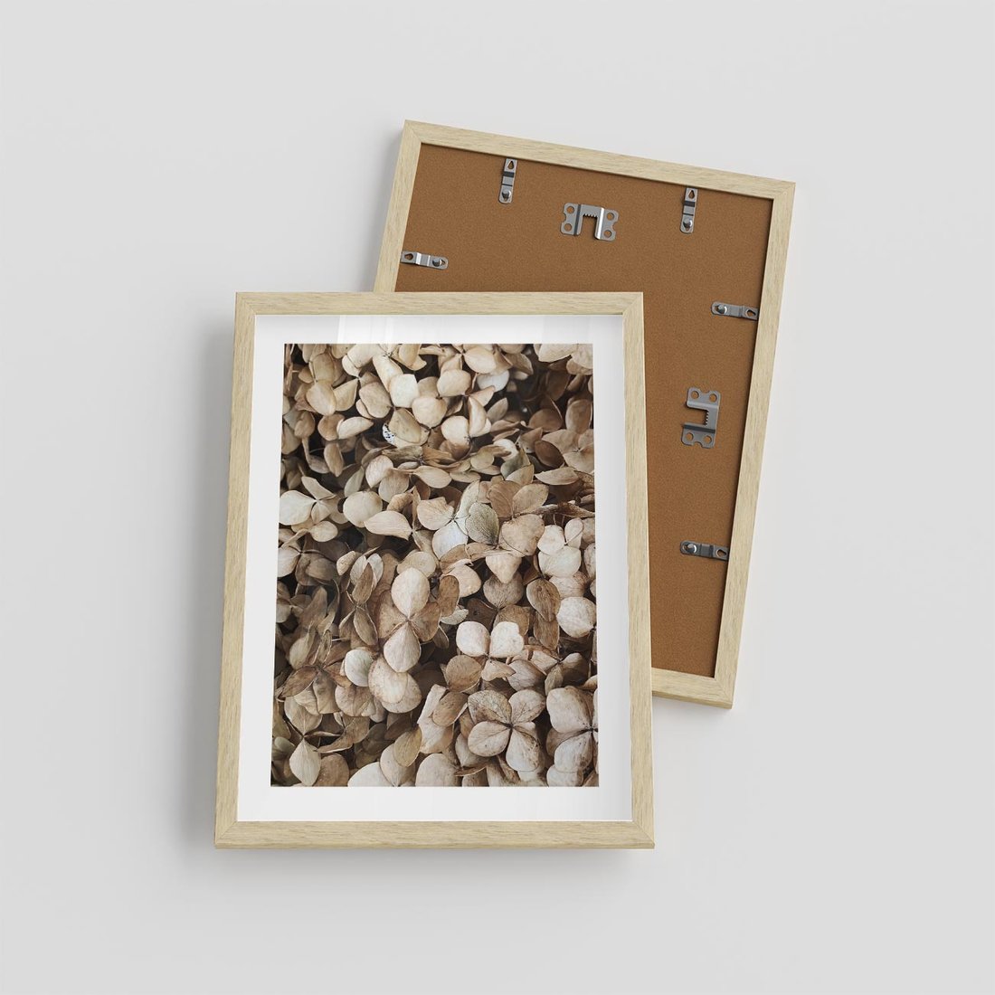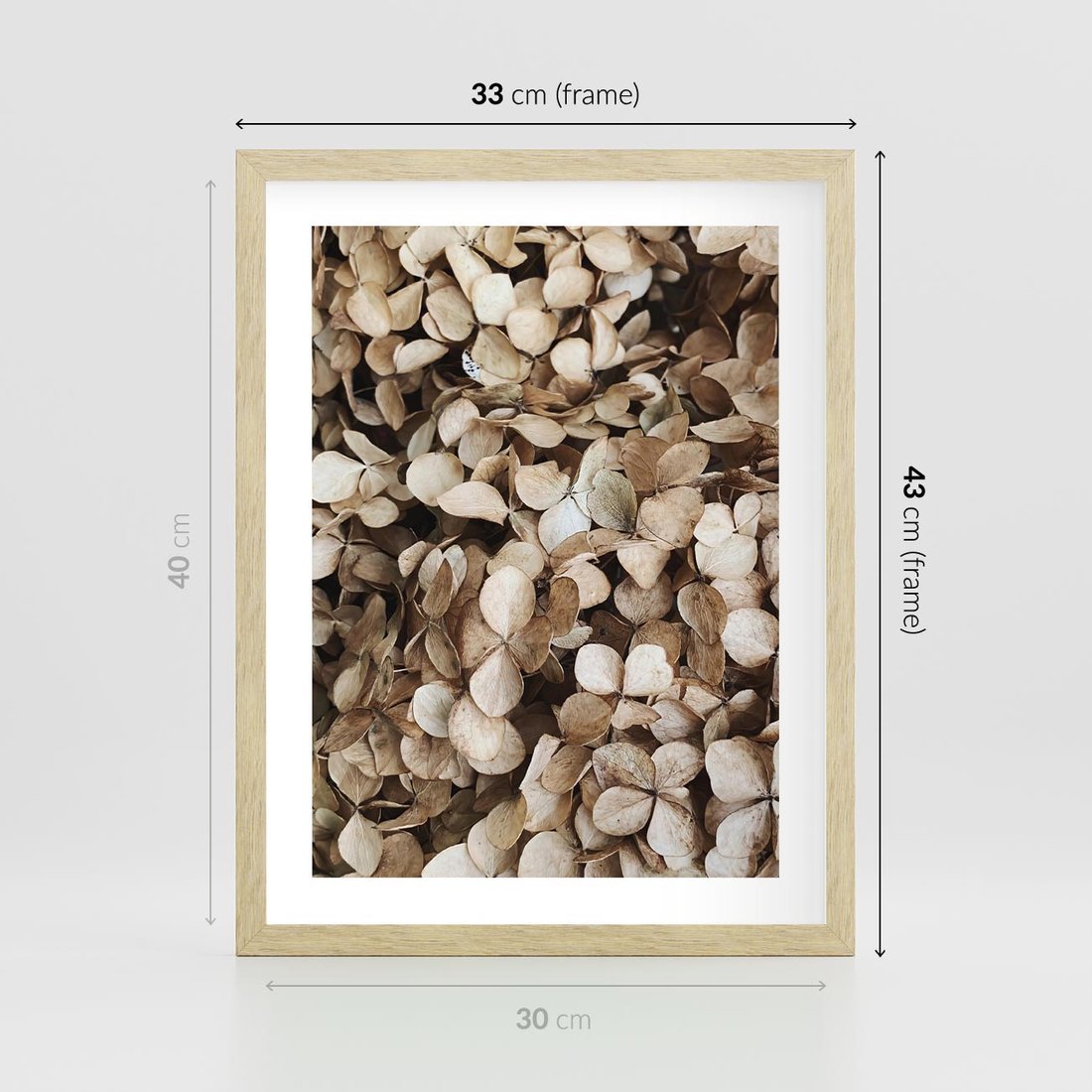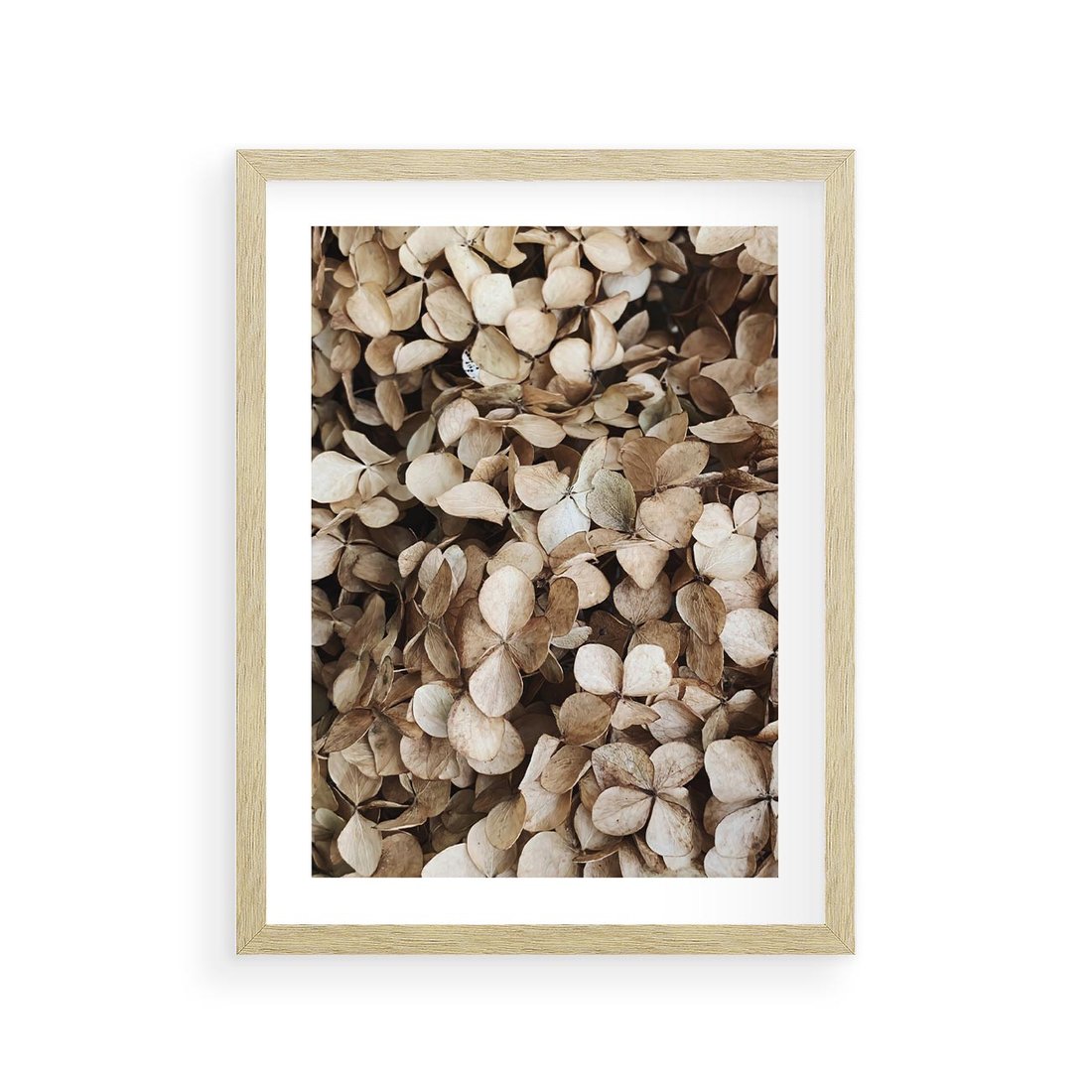 Plakat w ramie 30x40 - Delikatność Hortensji: Kompozycja Kwiatów w Beżu - hortensja, odcienie beżu - rama drewno