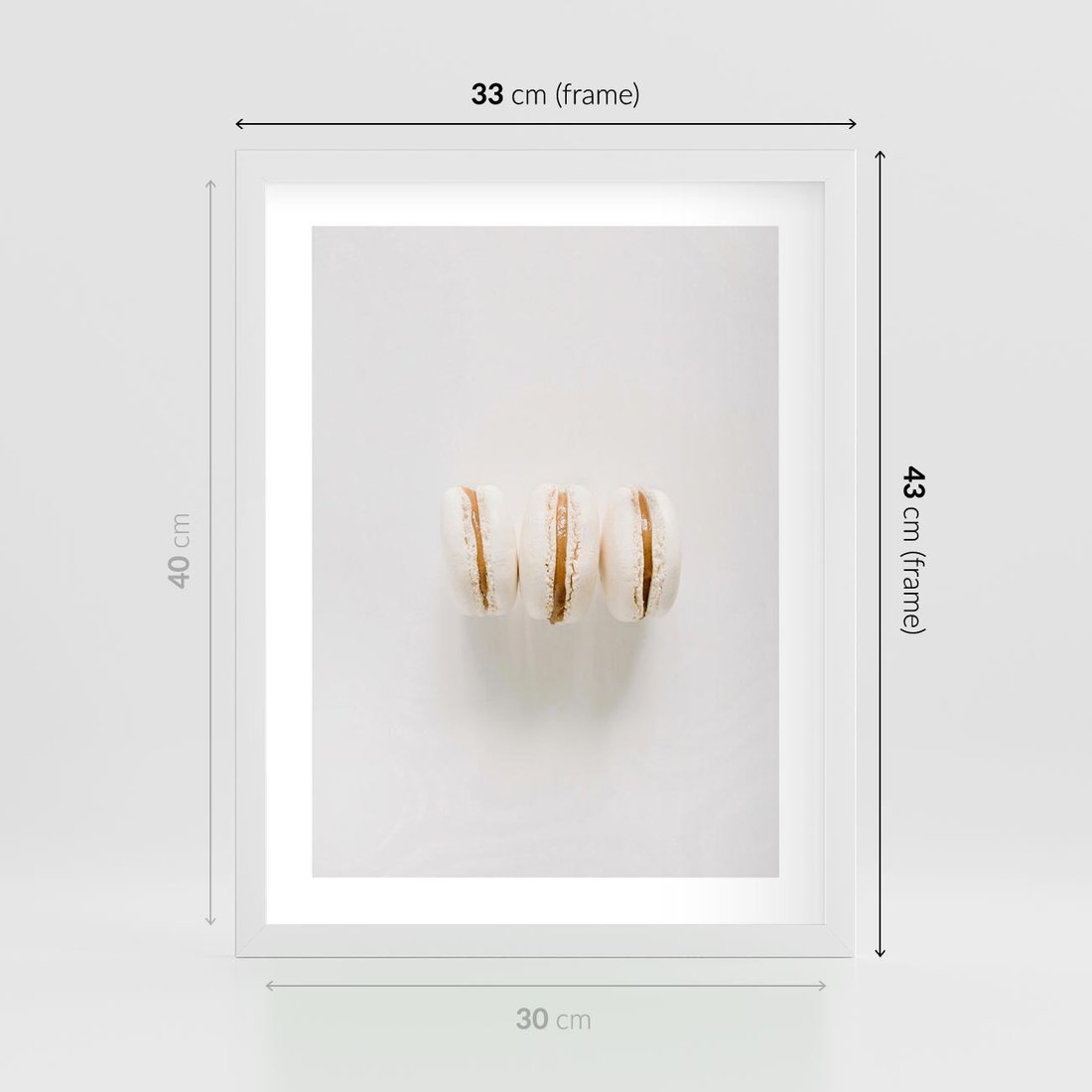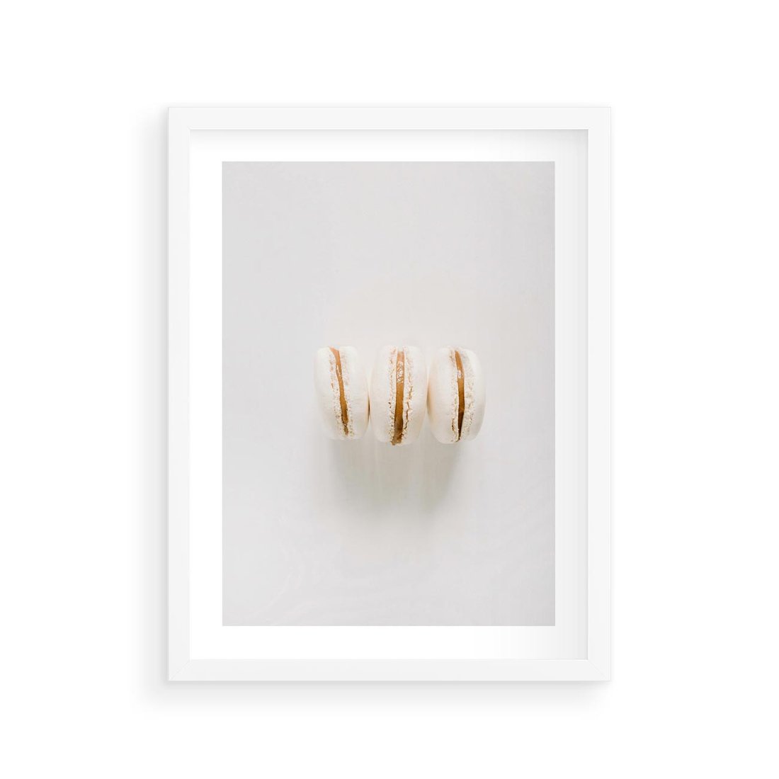 Plakat w ramie 30x40 - Delikatność w Bieli - białe ciateczka. makaroniki, minimalistyczne zdjęcie - rama biała