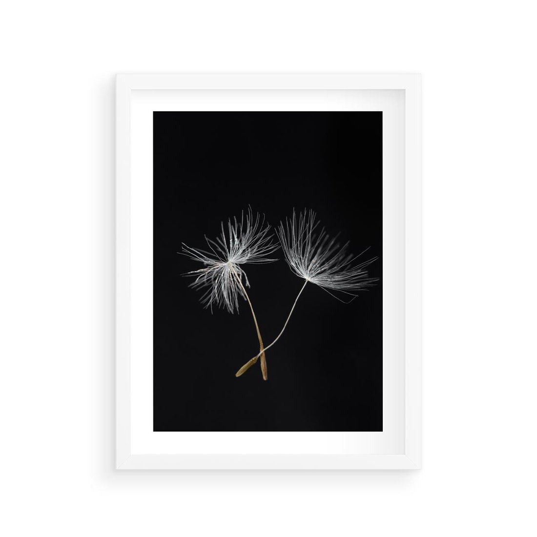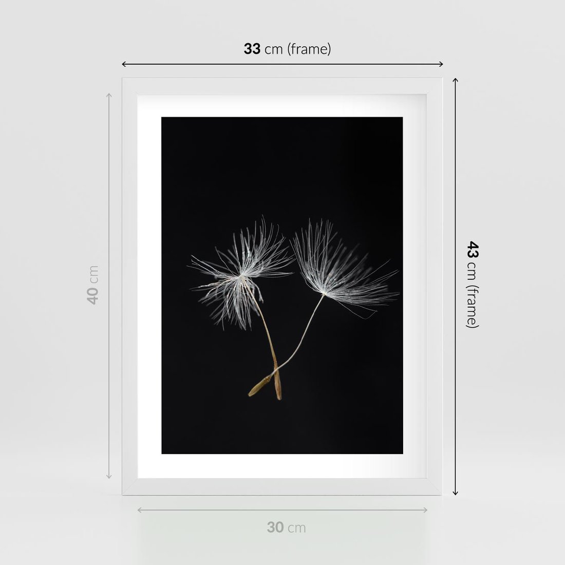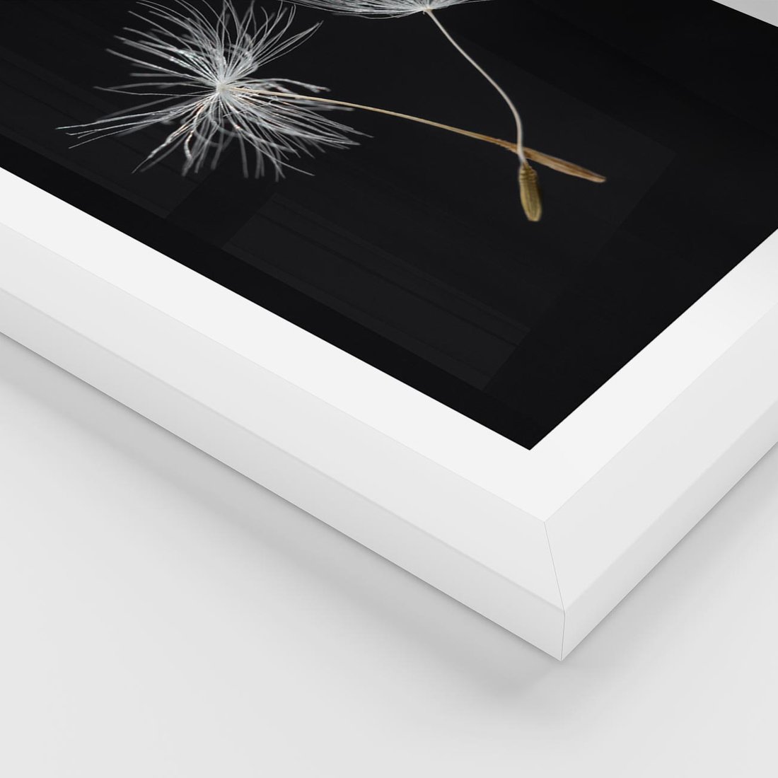 Plakat w ramie 30x40 - Delikatność Wiatru - dmuchawce, makro - rama biała
