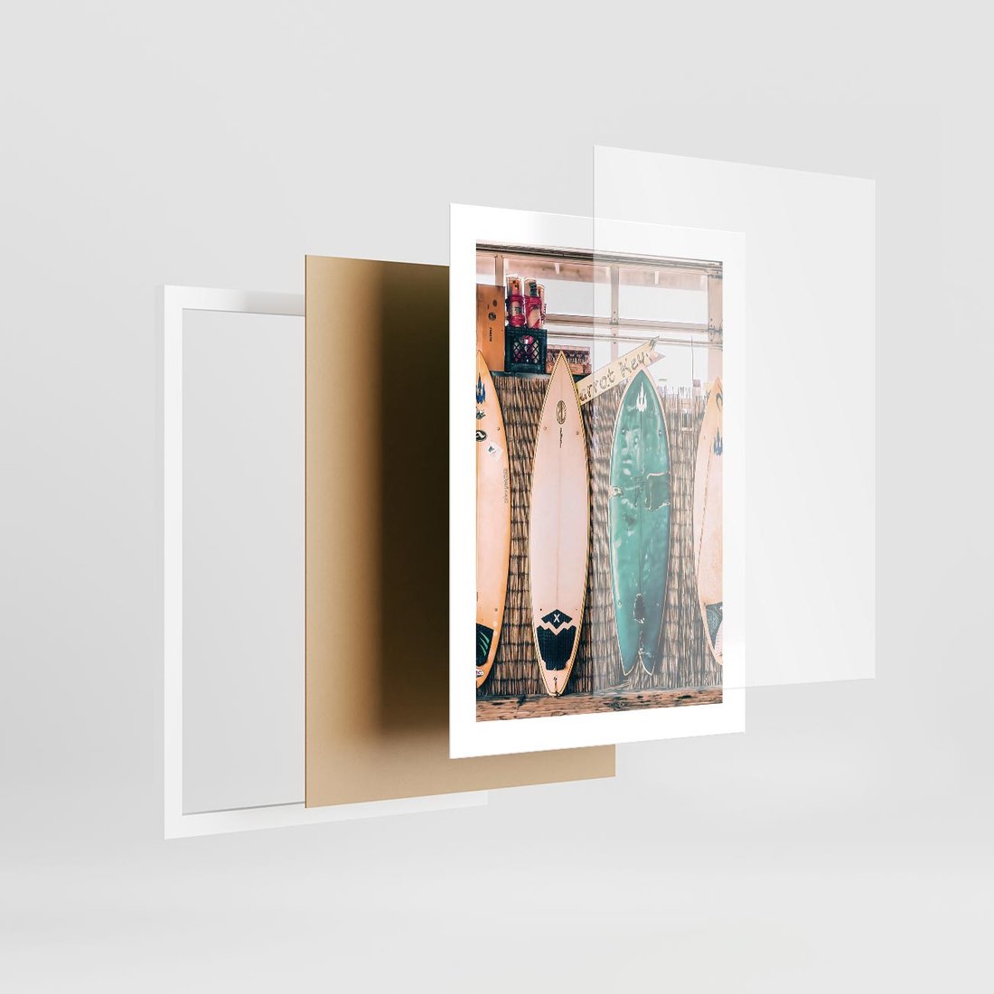 Plakat w ramie 30x40 - Deski Surfingowe w Pionie - deski surfingowe, ustawione pionowo - rama biała