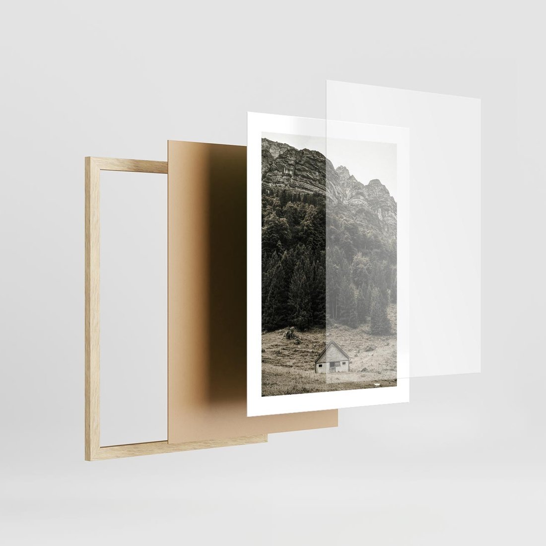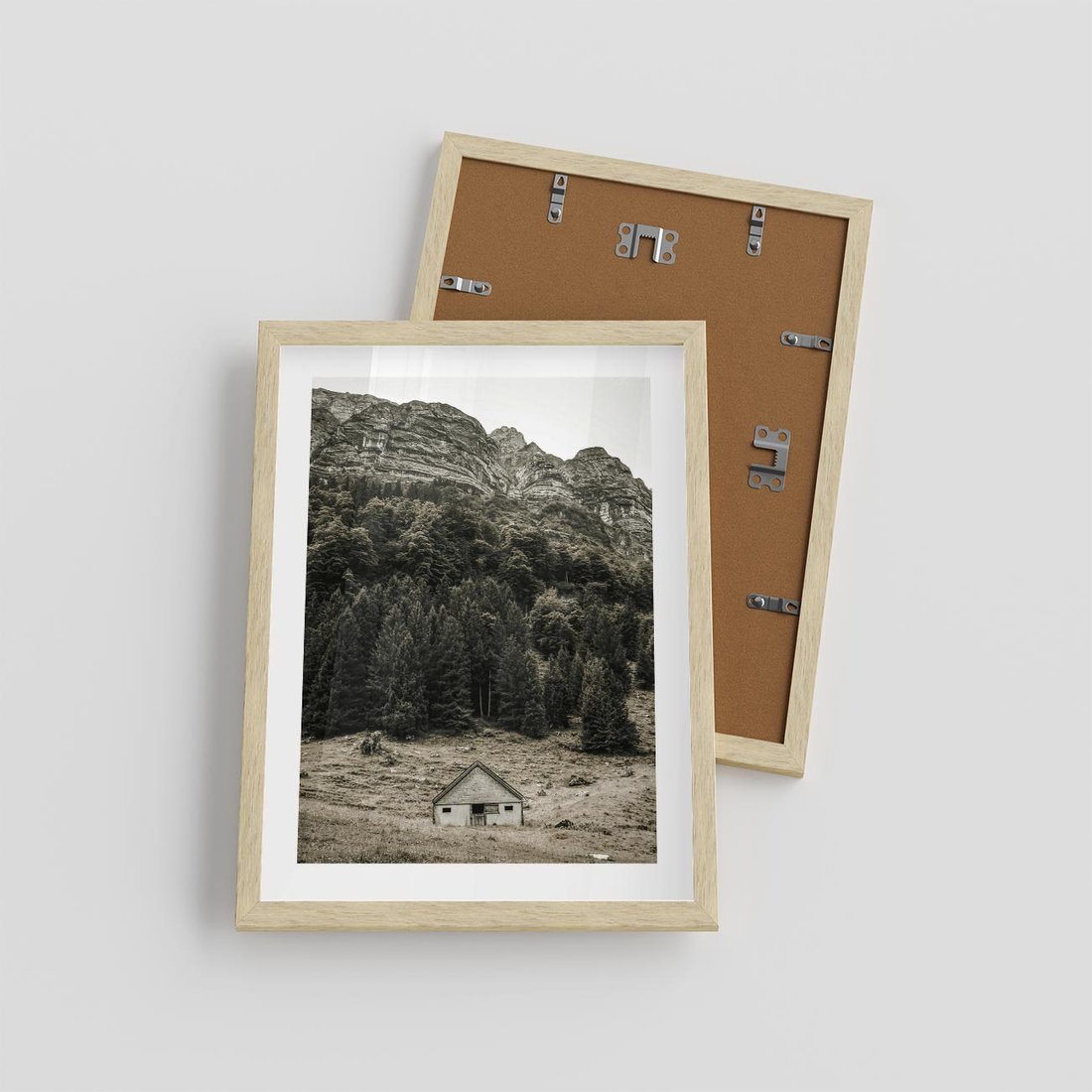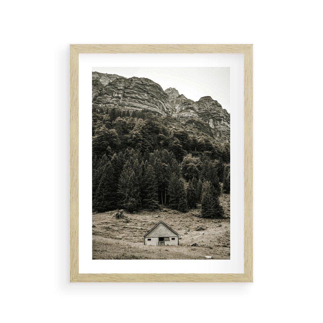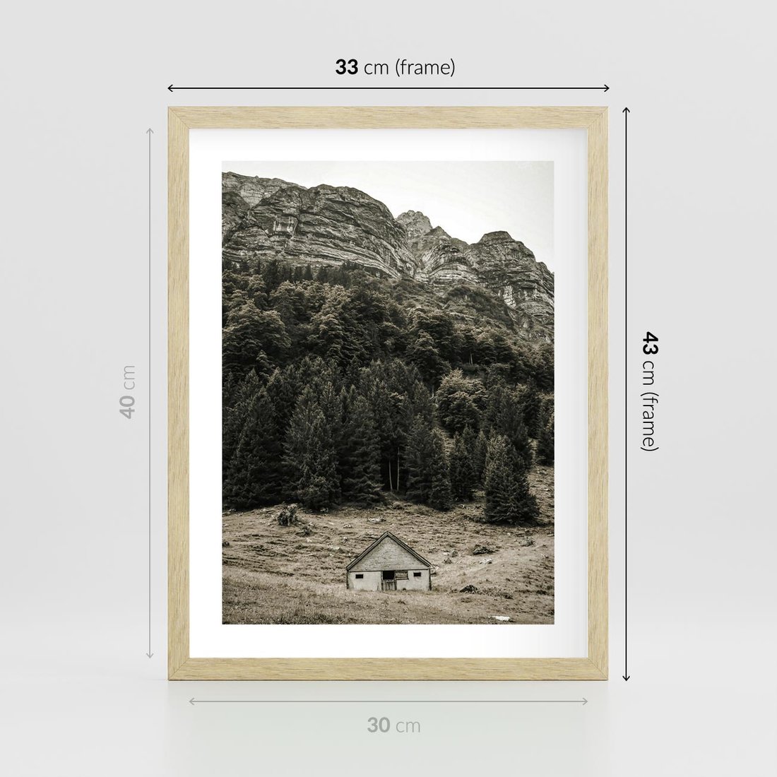 Plakat w ramie 30x40 - Dom w Odcieniach Natury - domek w górach, góry - rama drewno