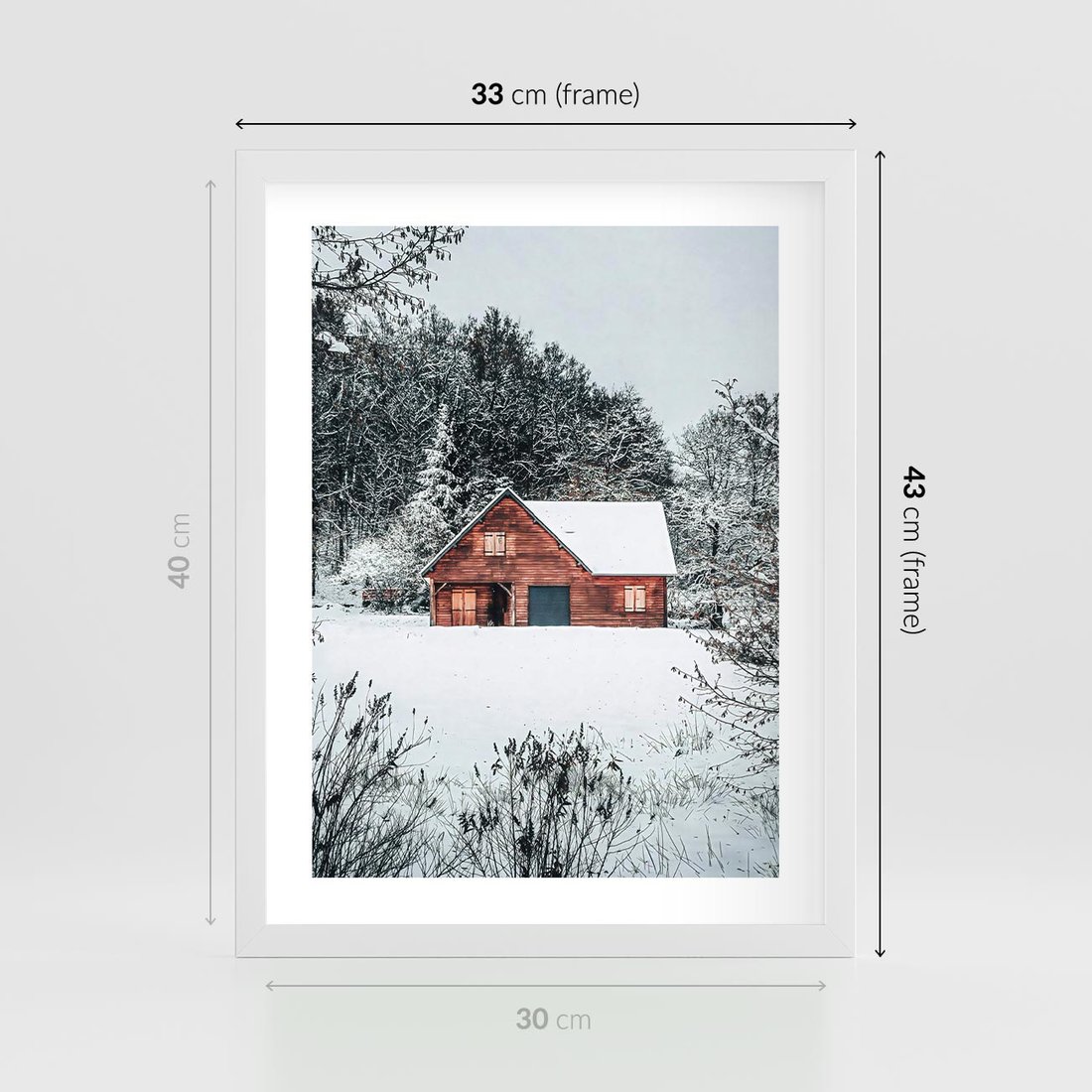 - Plakat w ramie 30x40 - Domek w Górach Pokryty Śniegiem