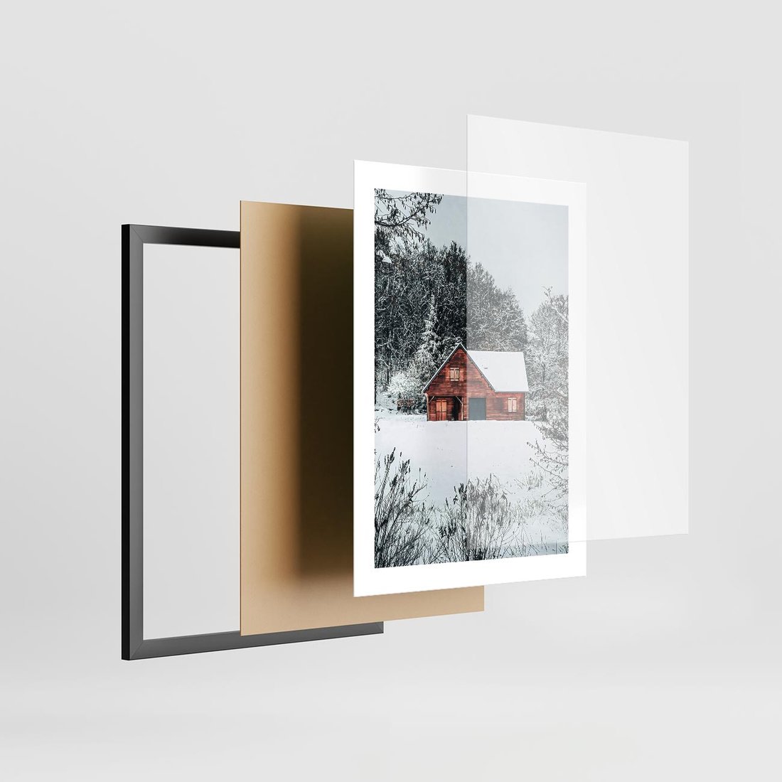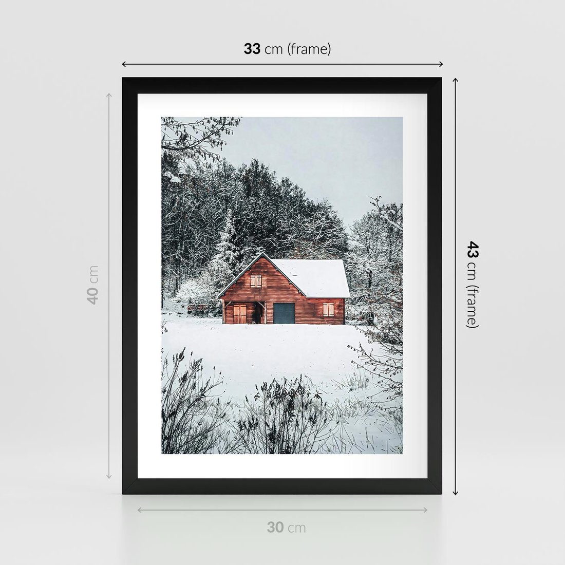 - Plakat w ramie 30x40 - Domek w Górach Pokryty Śniegiem