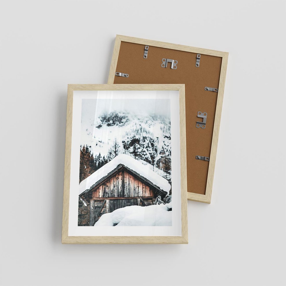 - Plakat w ramie 30x40 - Domek w Górach w Białym Odcieniu