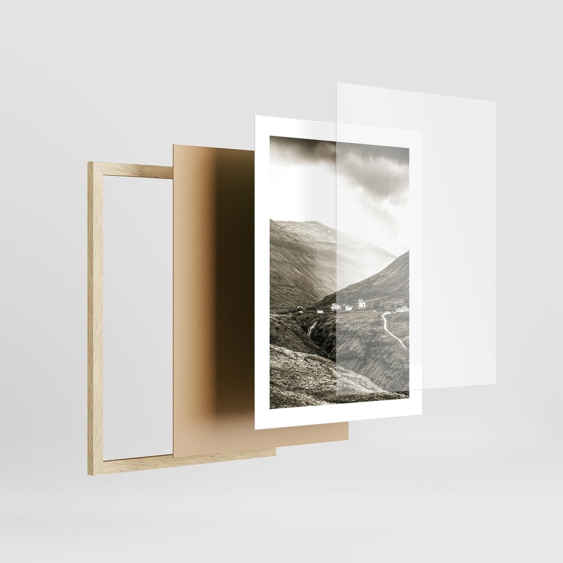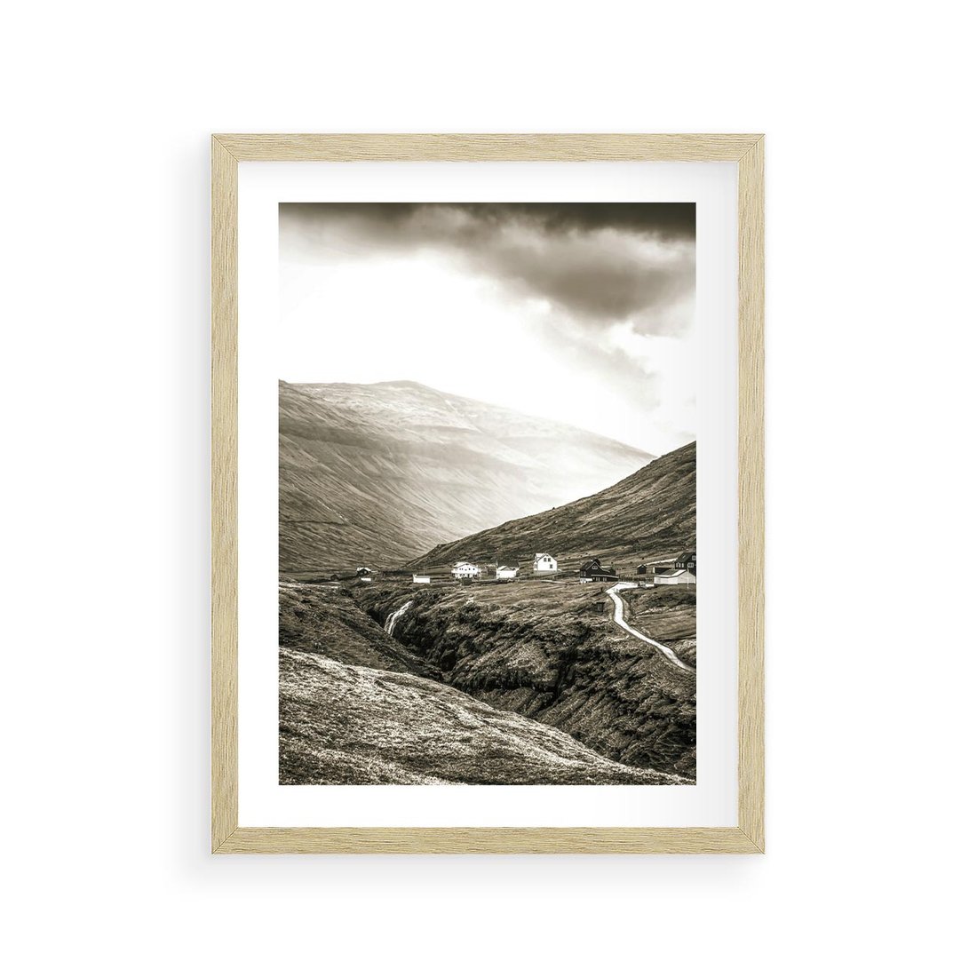 Plakat w ramie 30x40 - Domki w Górach - czarno biała fotografia, górski pejzaż - rama drewno