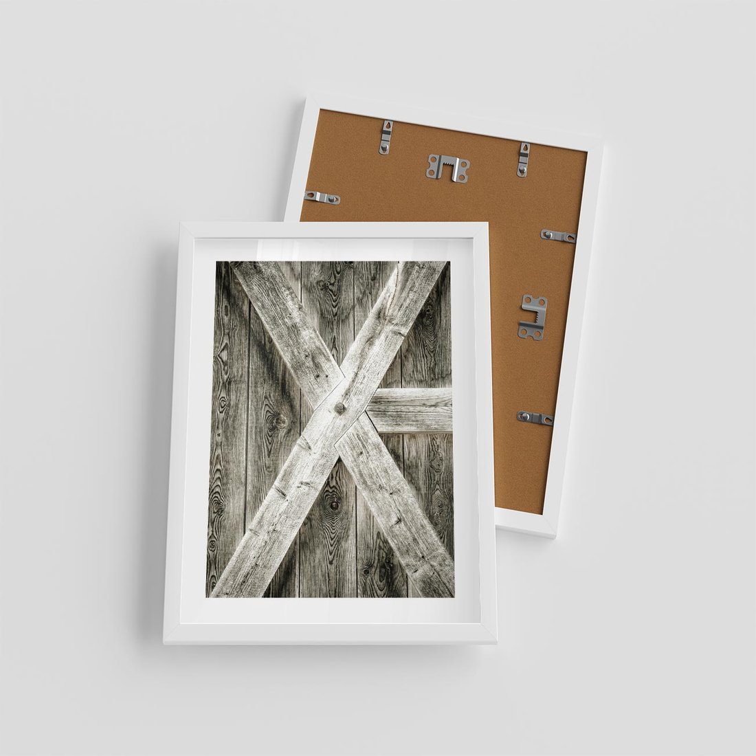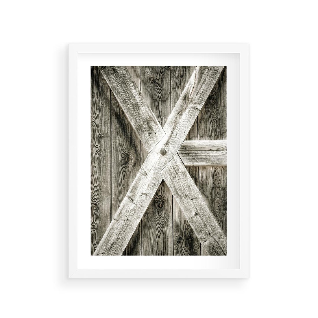 Plakat w ramie 30x40 - Drewniane Drzwi do Stodoły - stare drzwi do stodoły, drewniane - rama biała