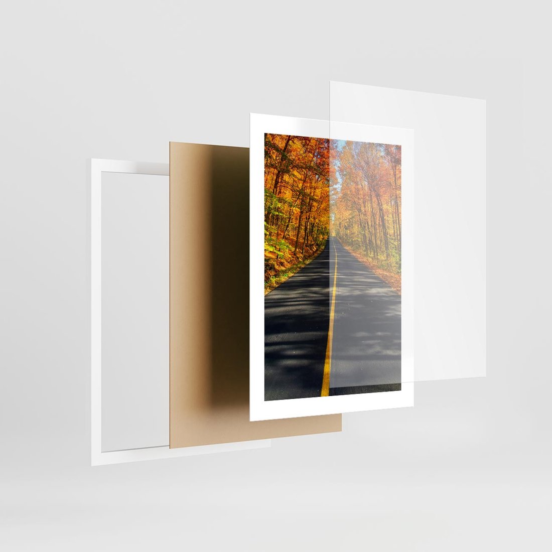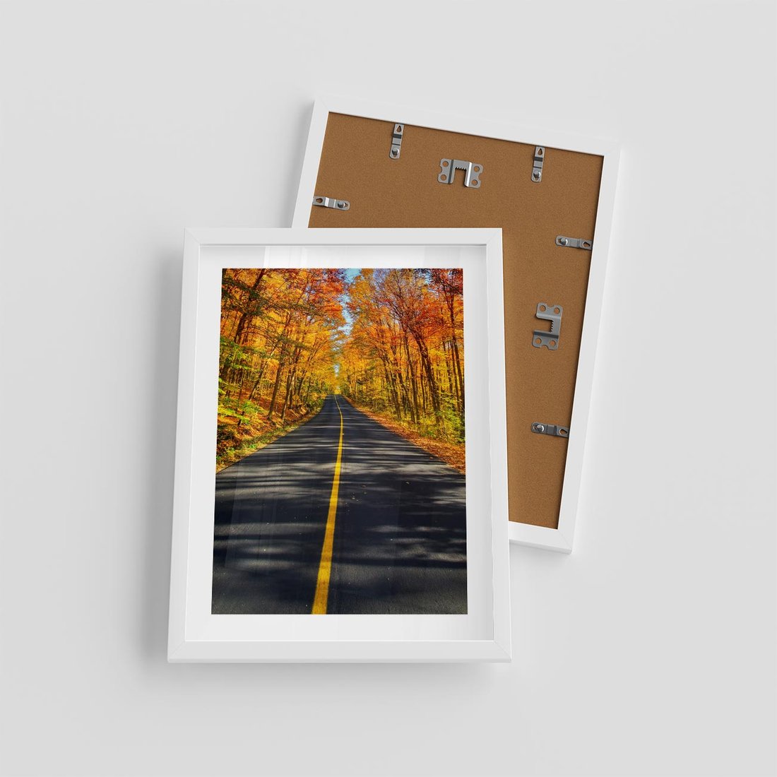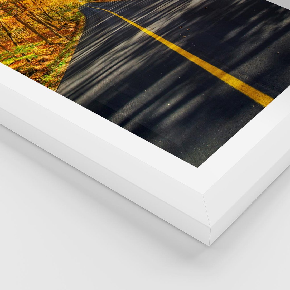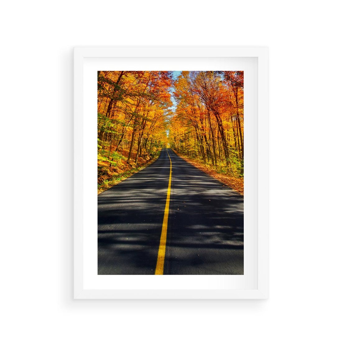 Plakat w ramie 30x40 - Droga przez jesienny las - droga, las - rama biała
