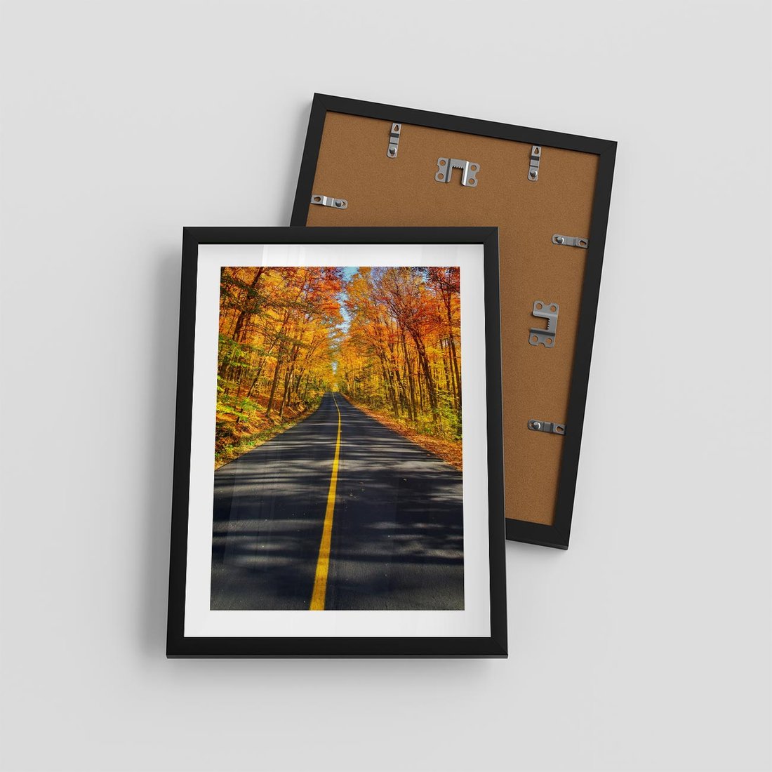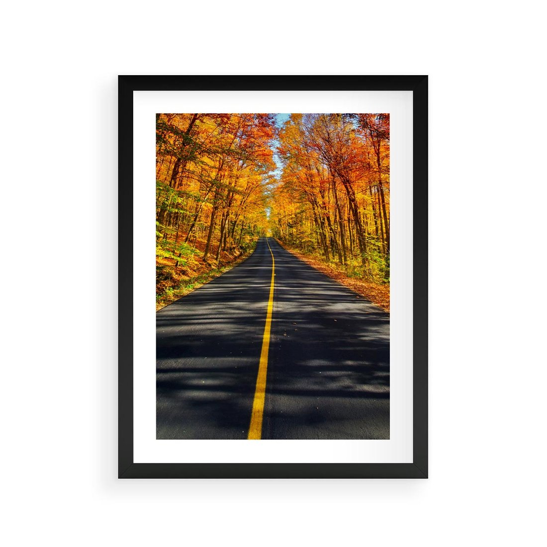 Plakat w ramie 30x40 - Droga przez jesienny las - droga, las - rama czarna