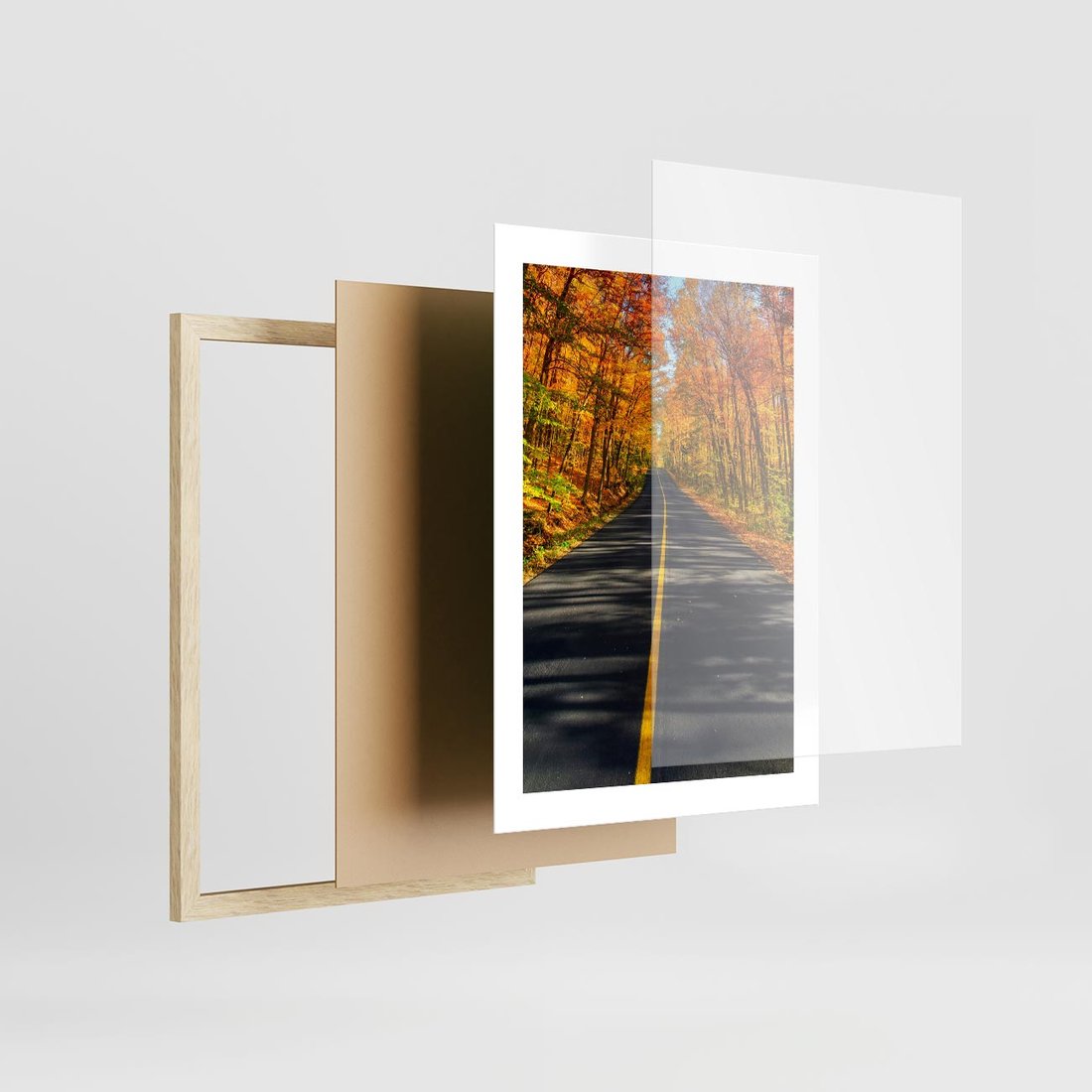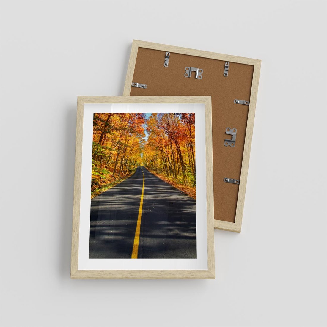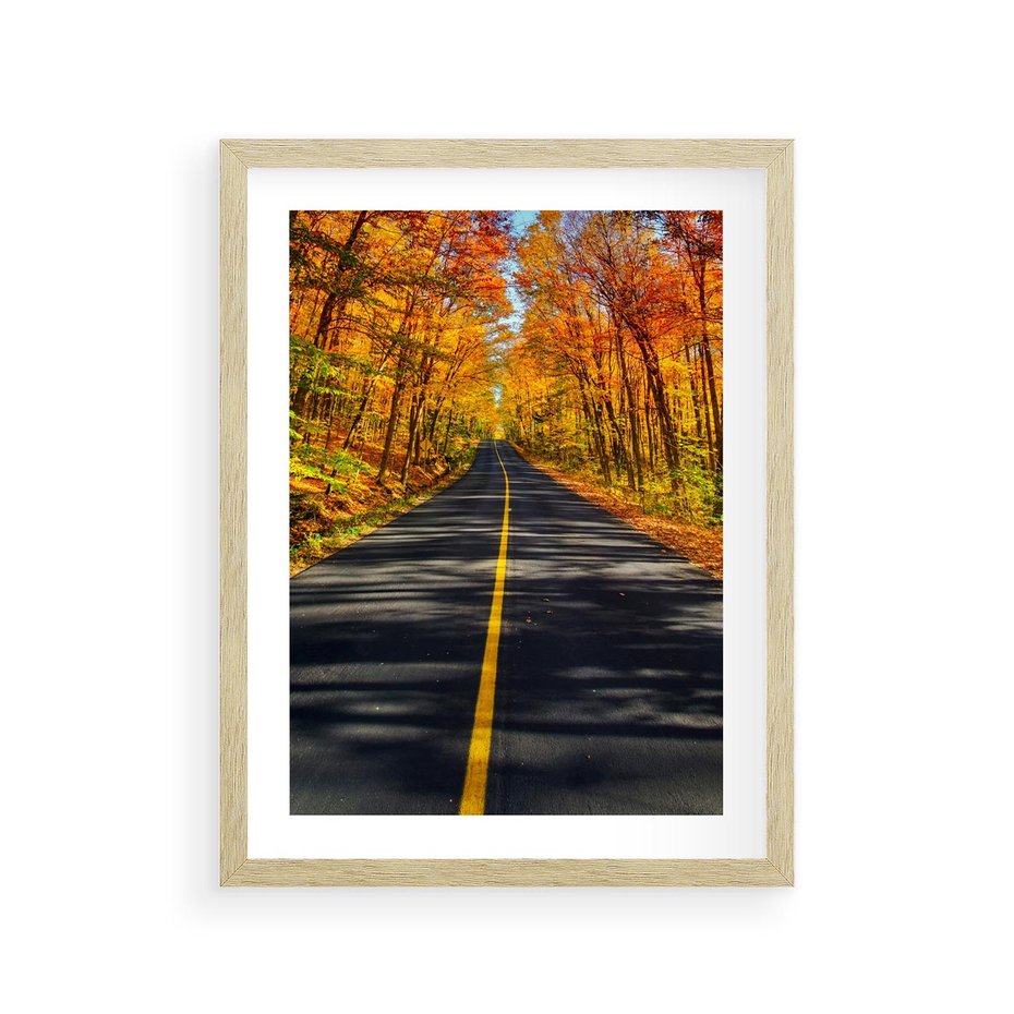 Plakat w ramie 30x40 - Droga przez jesienny las - droga, las - rama drewno