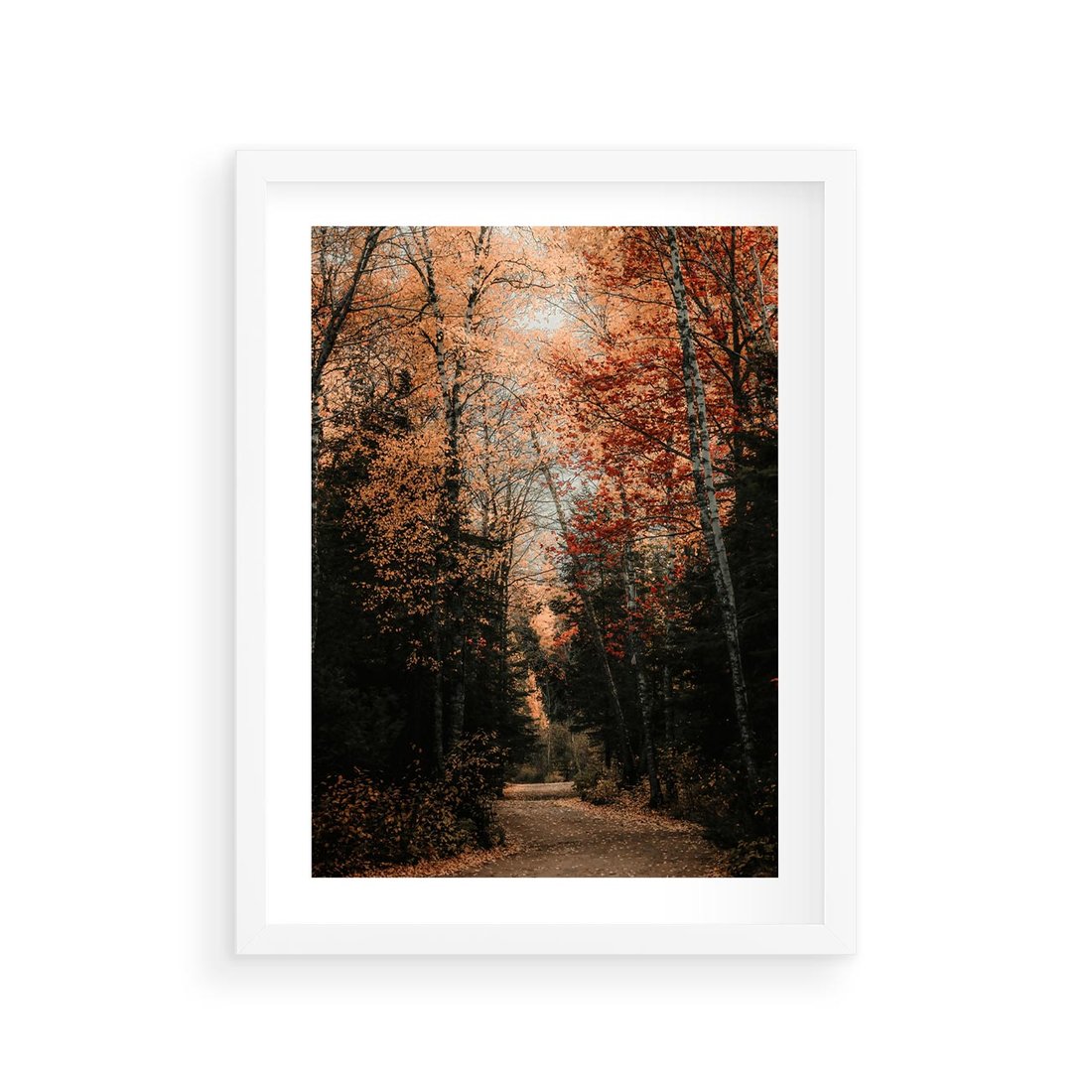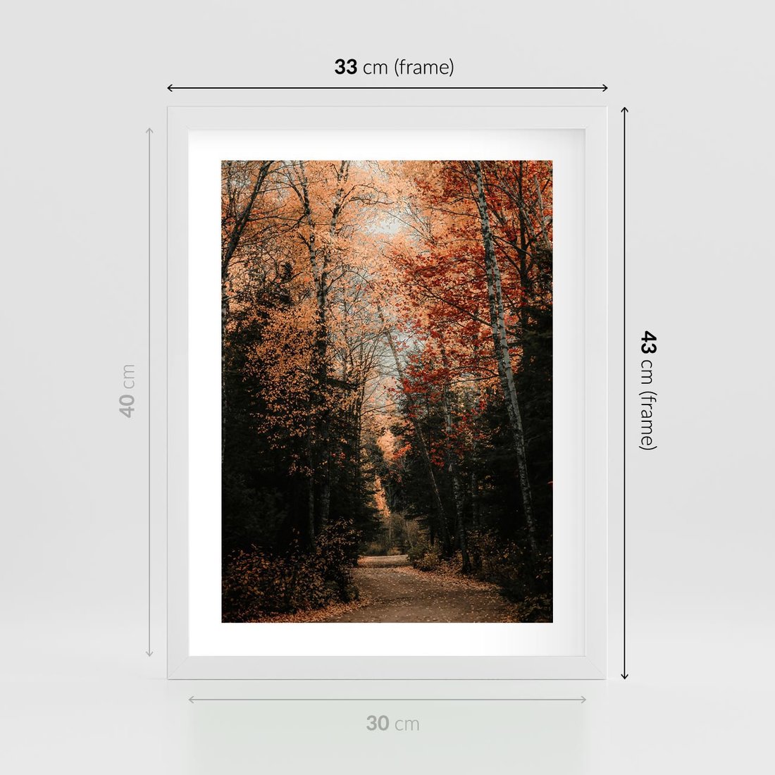 Plakat w ramie 30x40 - Drzewa w Czerwonych Liściach - las, jesienny las - rama biała