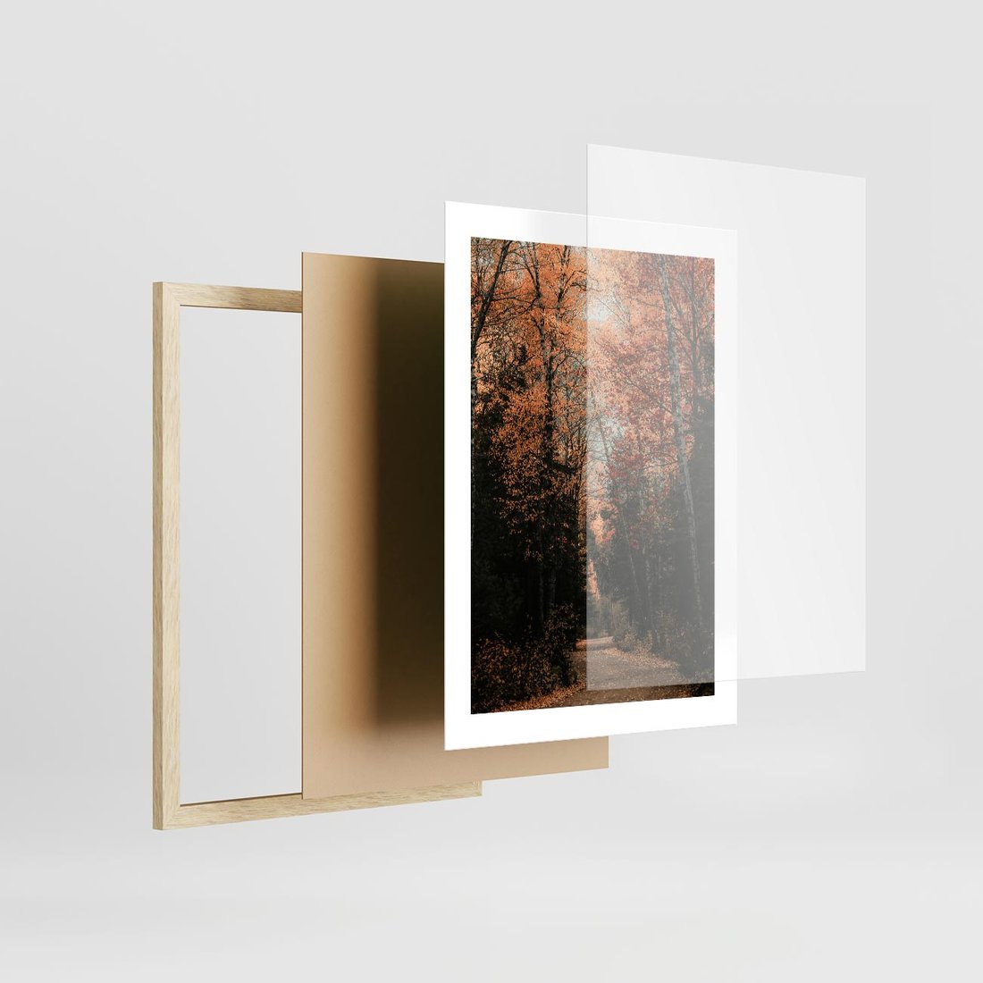Plakat w ramie 30x40 - Drzewa w Czerwonych Liściach - las, jesienny las - rama drewno