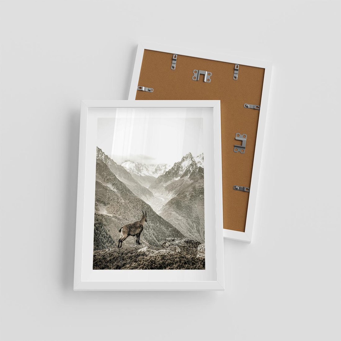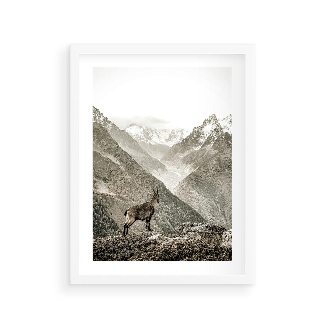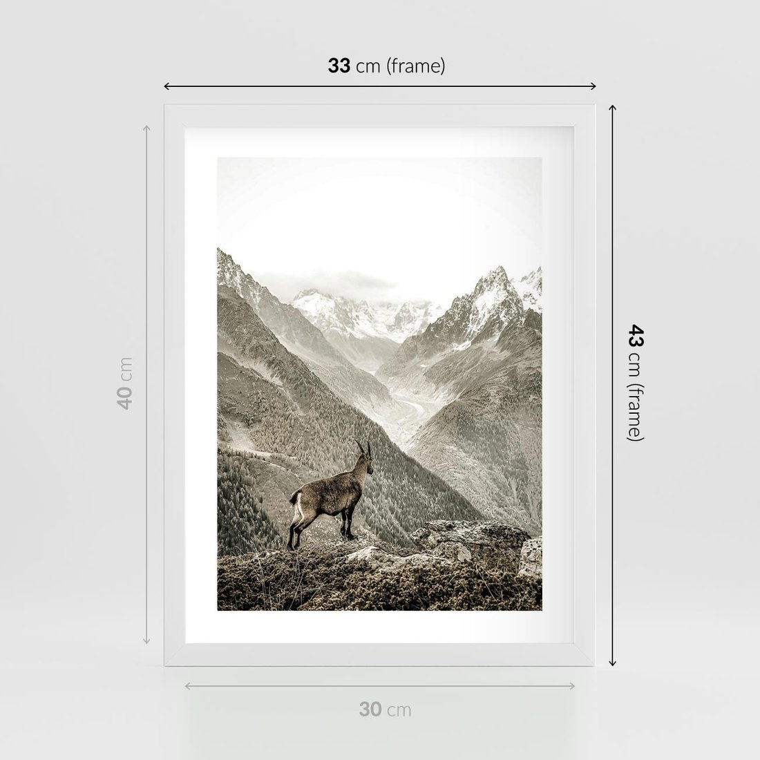 Plakat w ramie 30x40 - Dzikie Piękno: Kozica w Malowniczym Górskim Scenerii - kozica, góry - rama biała