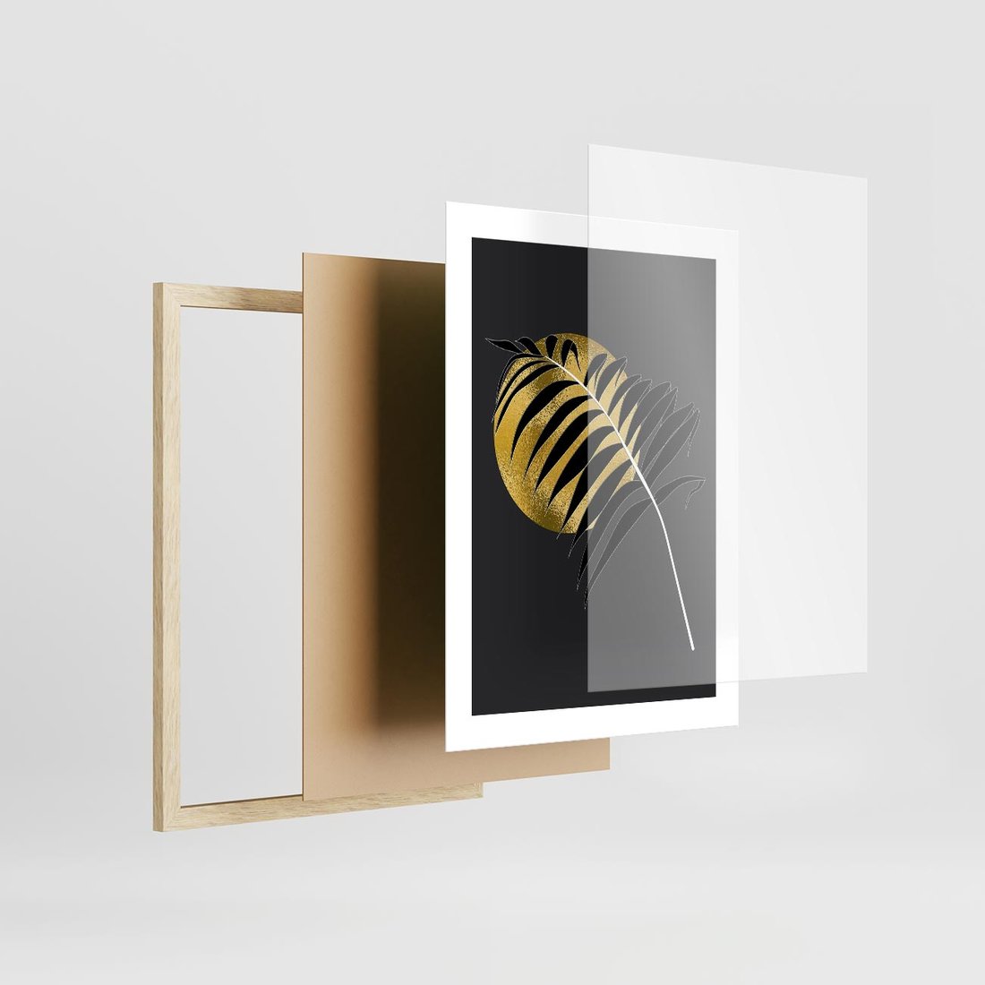 Plakat w ramie 30x40 - Egzotyczna Elegancja - palma, na czarnym tle - rama drewno