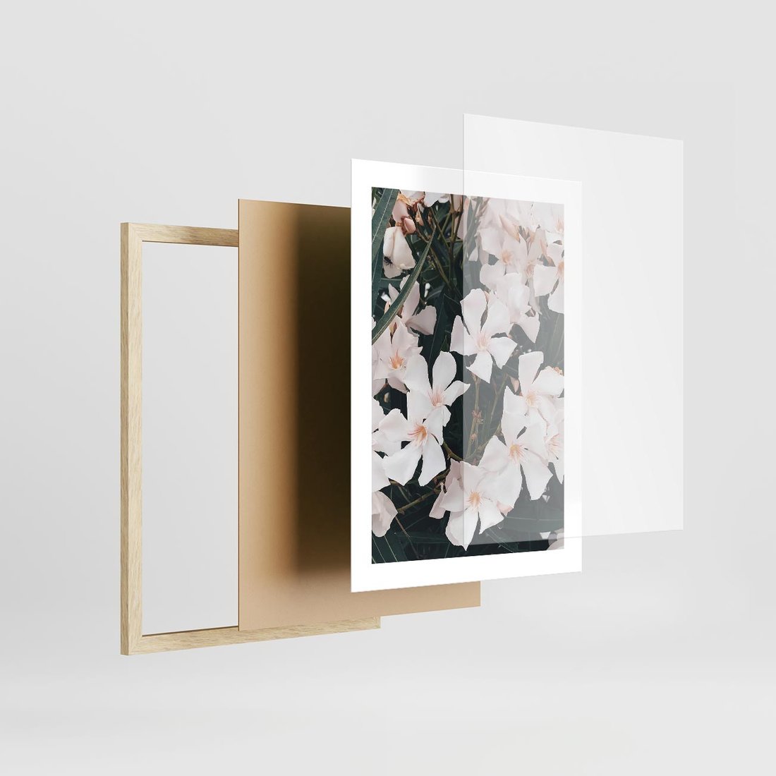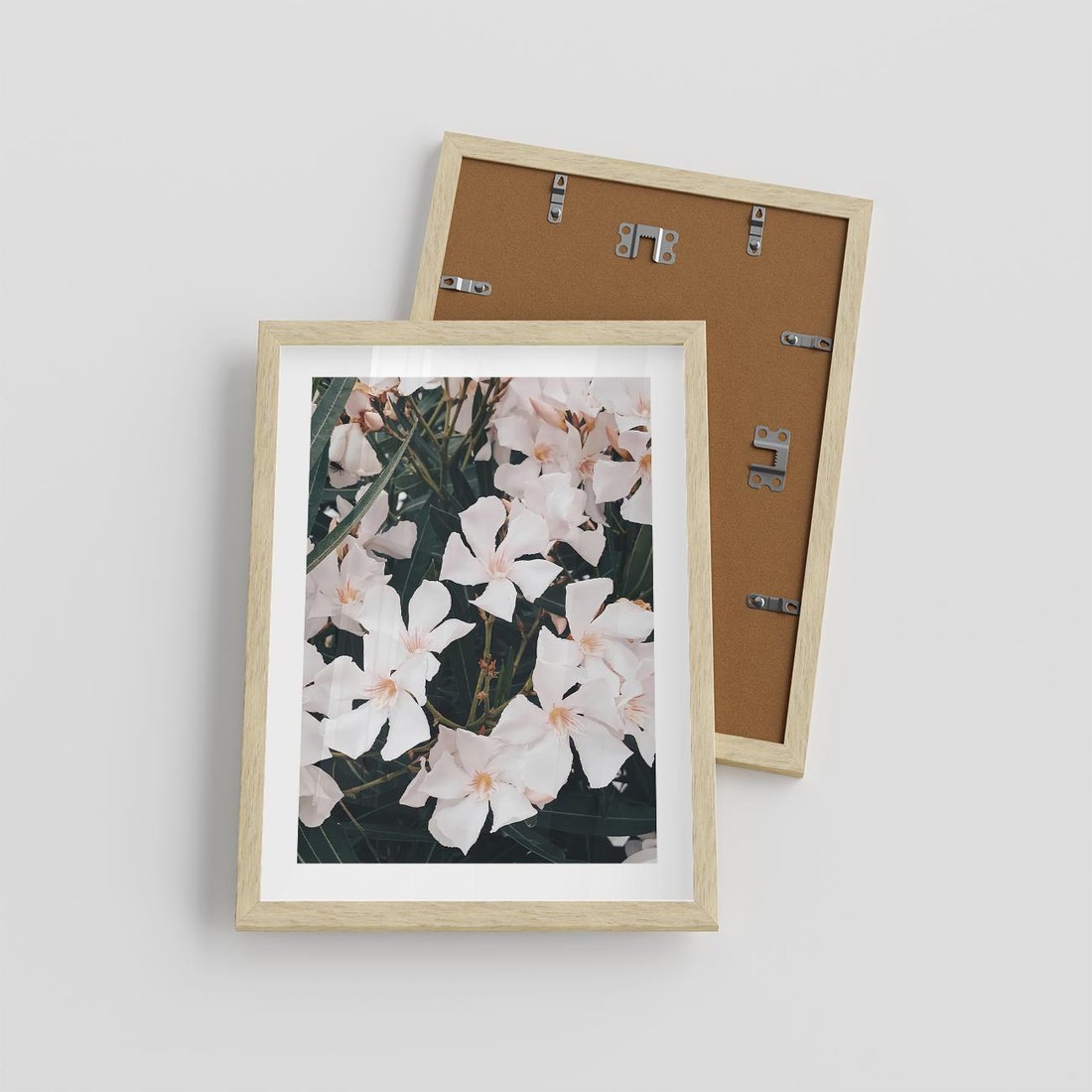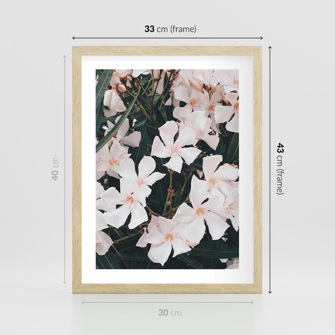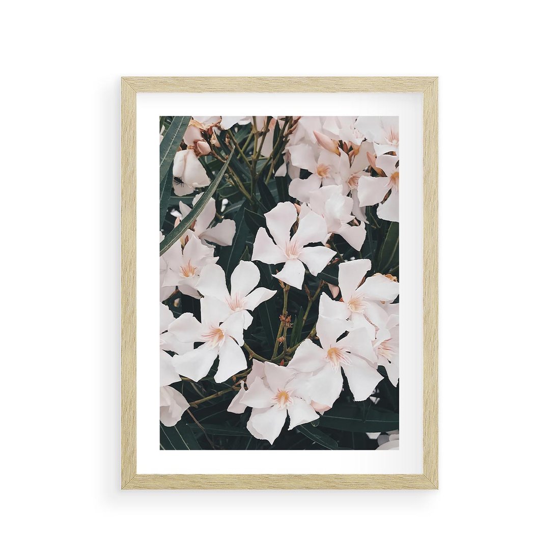 Plakat w ramie 30x40 - Egzotyczna Uroda - białe kwiaty, tropikalne kwiaty - rama drewno