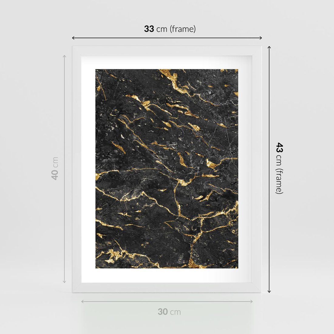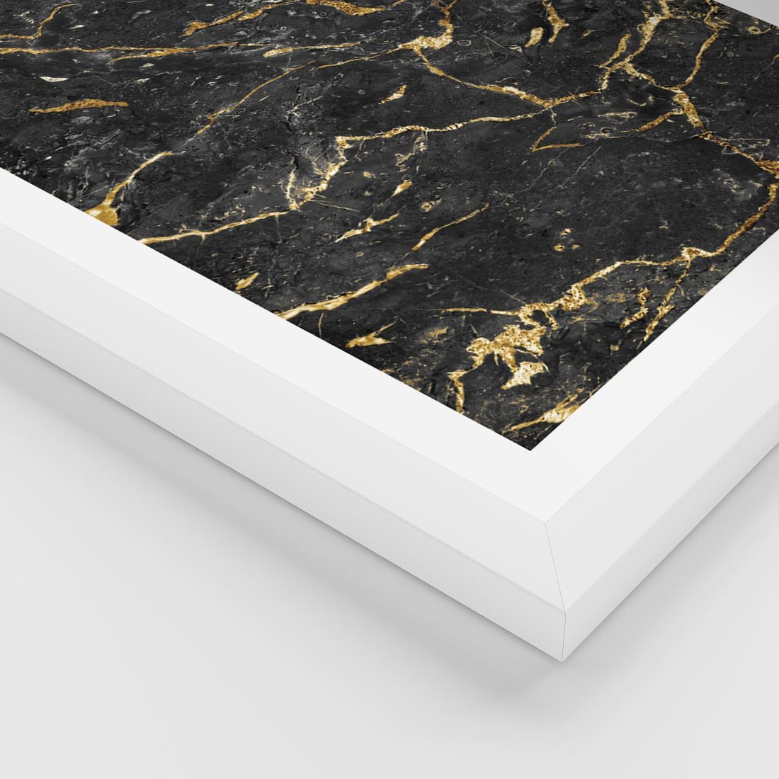Plakat w ramie 30x40 - Egzotyczny Blask - marmur, złoto - rama biała