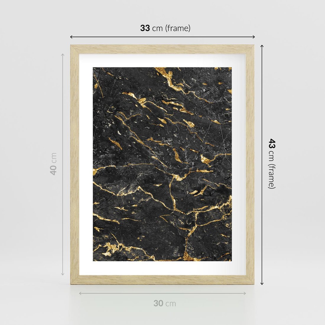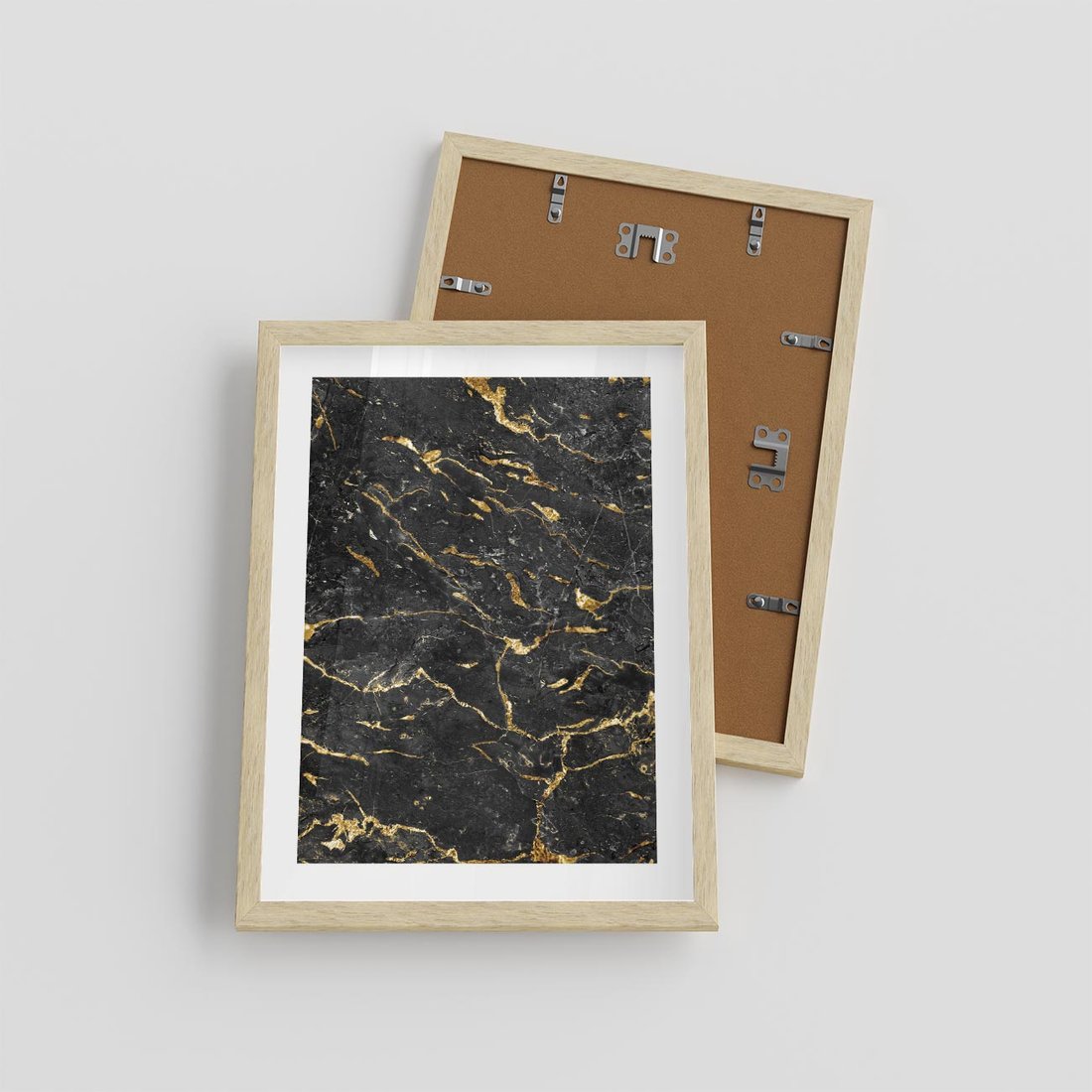 Plakat w ramie 30x40 - Egzotyczny Blask - marmur, złoto - rama drewno