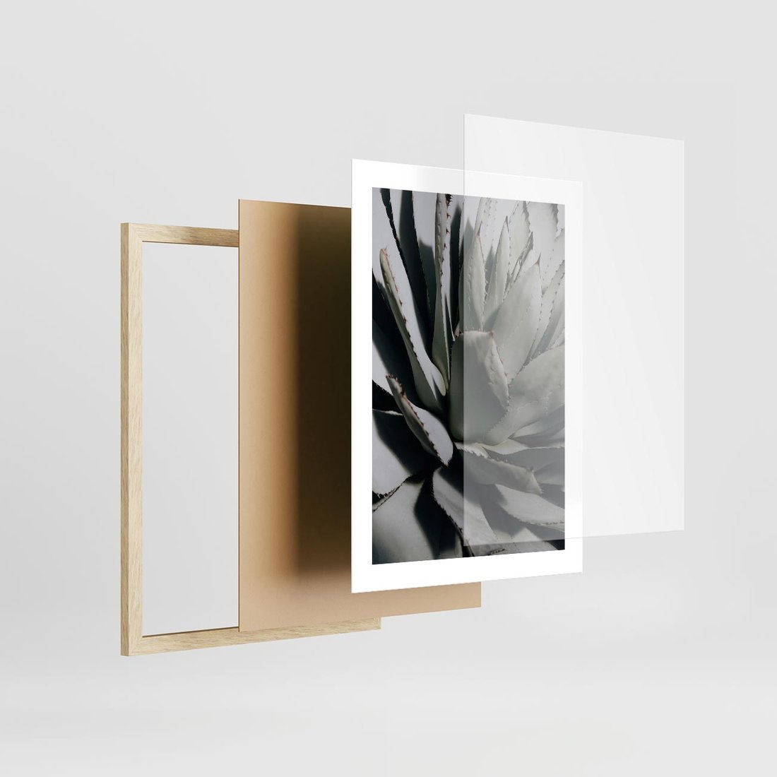 Plakat w ramie 30x40 - Egzotyczny Raj - sukulenty, kaktusy - rama drewno