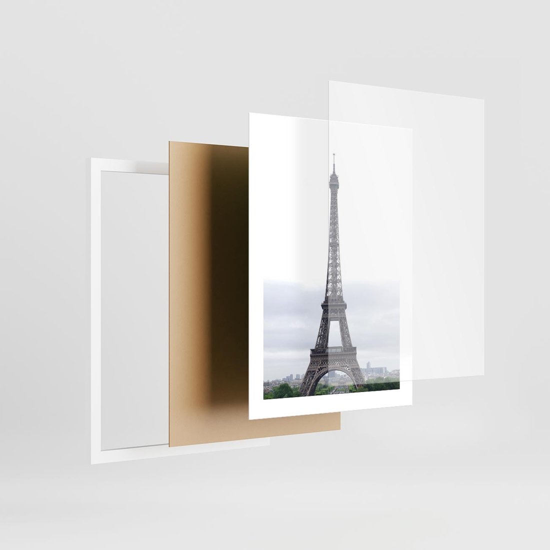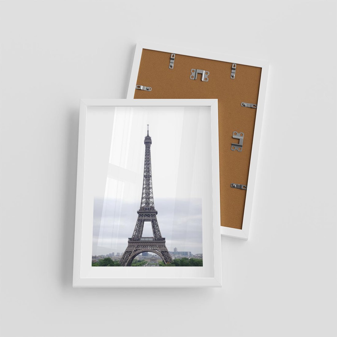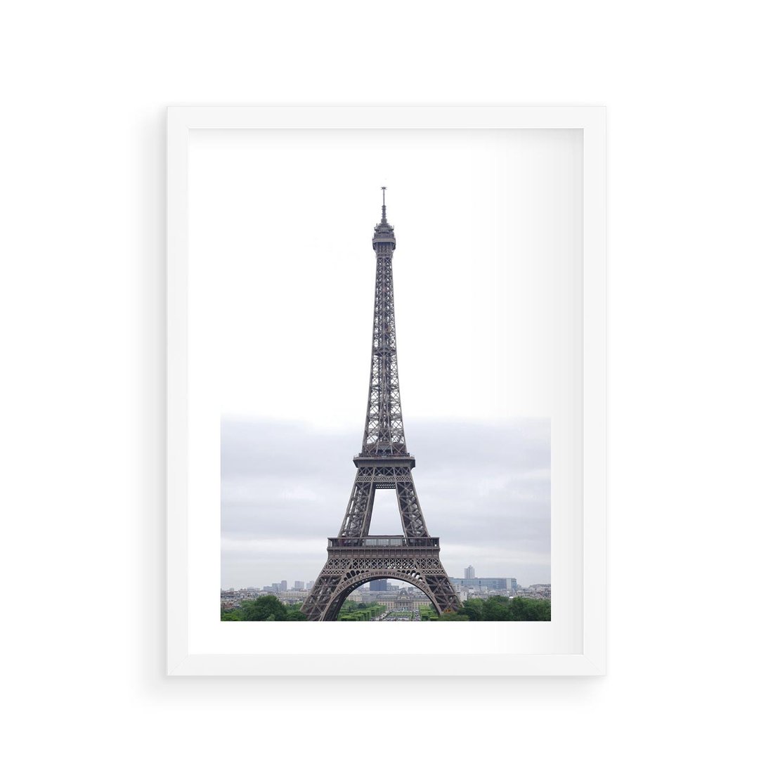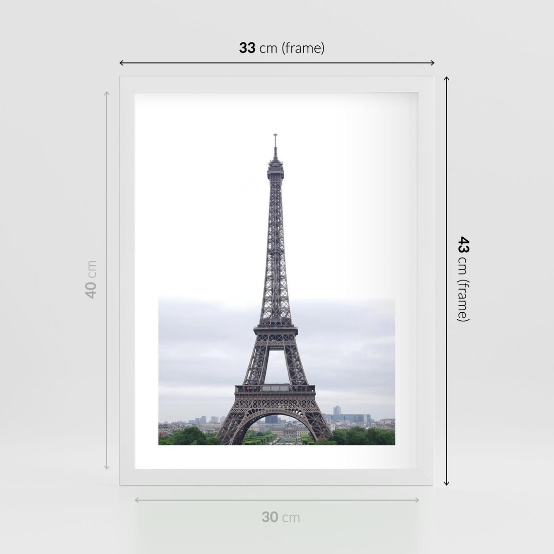 Plakat w ramie 30x40 - Eiffla w mglistym świetle - Eiffla, Paryż - rama biała
