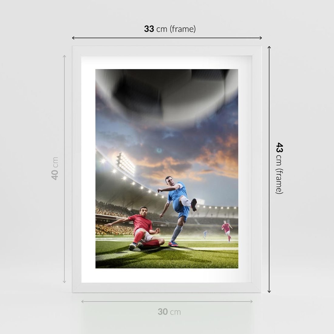 Plakat w ramie 30x40 - Ekscytacja Sportowego Świata - gol, mecz - rama biała