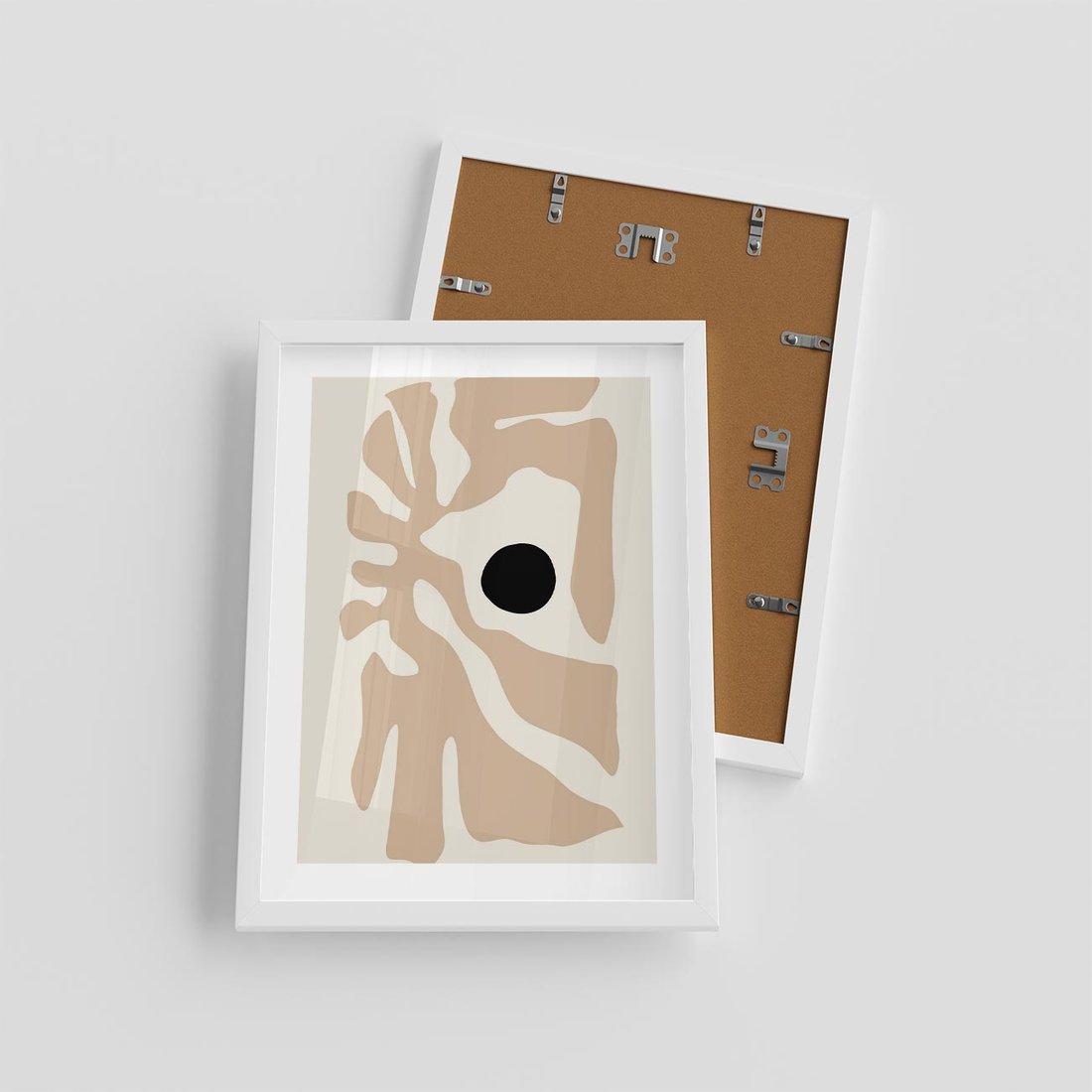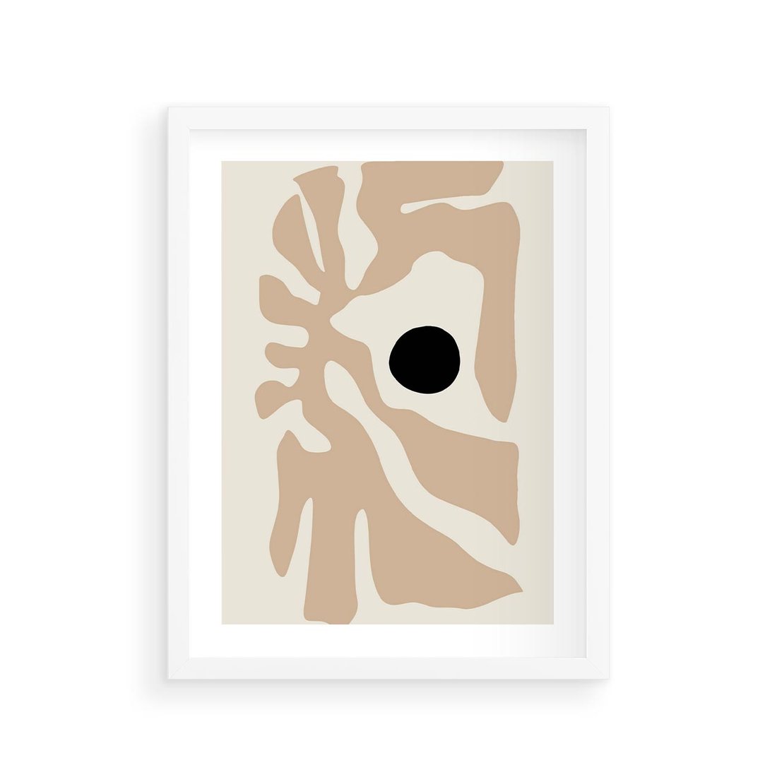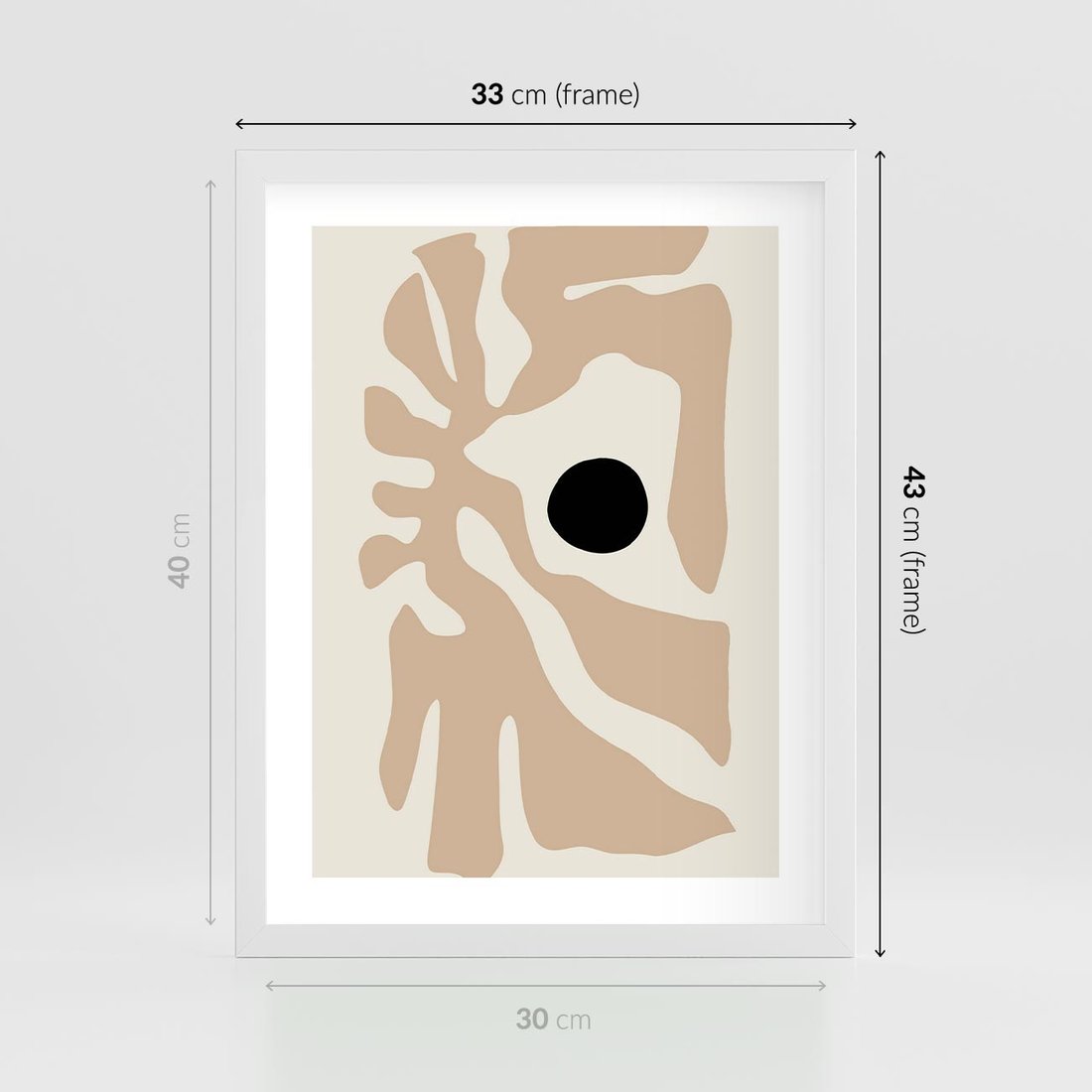 Plakat w ramie 30x40 - Eksploracja Abstrakcji - beżowa absrakcyjna kompozycja, czarny akcent - rama biała