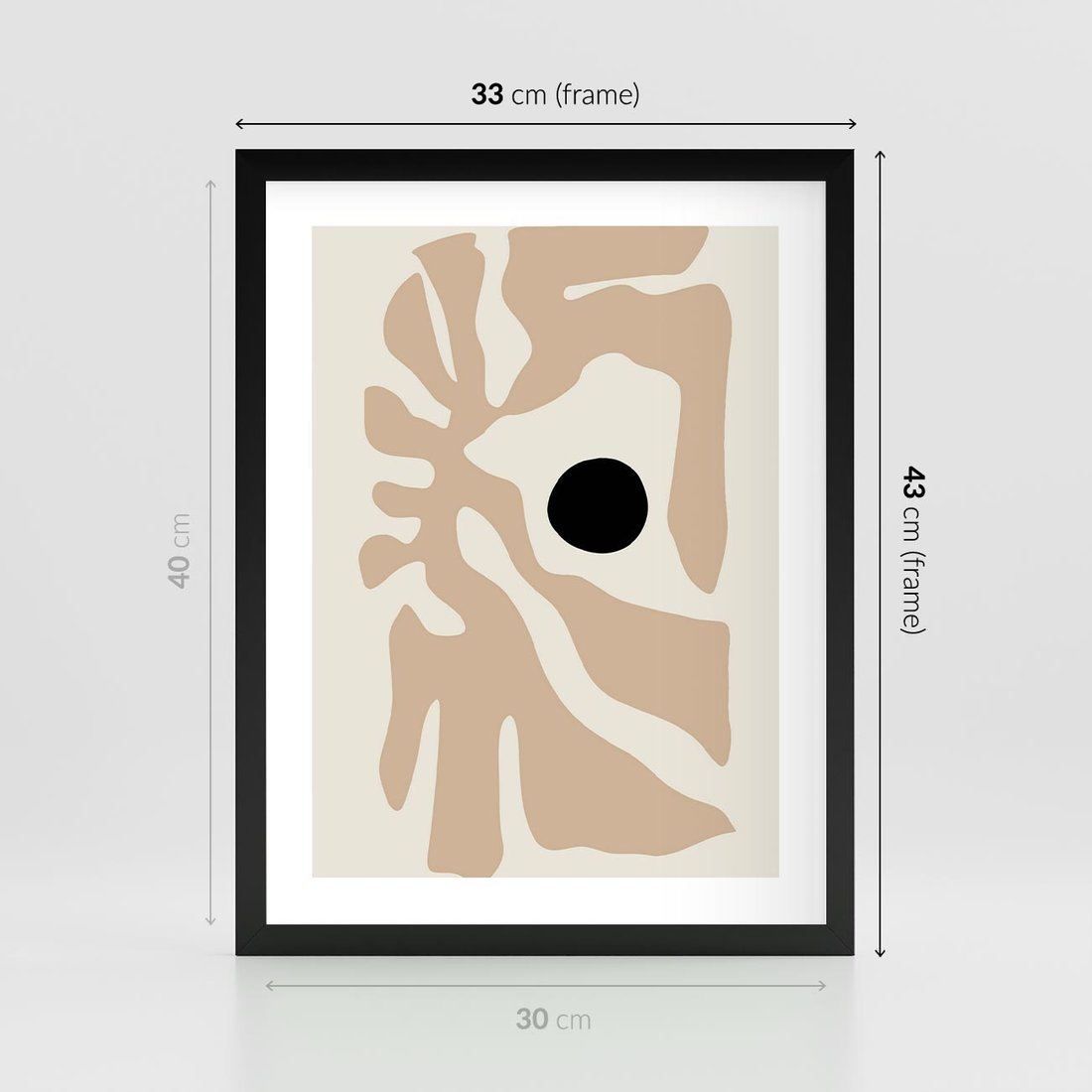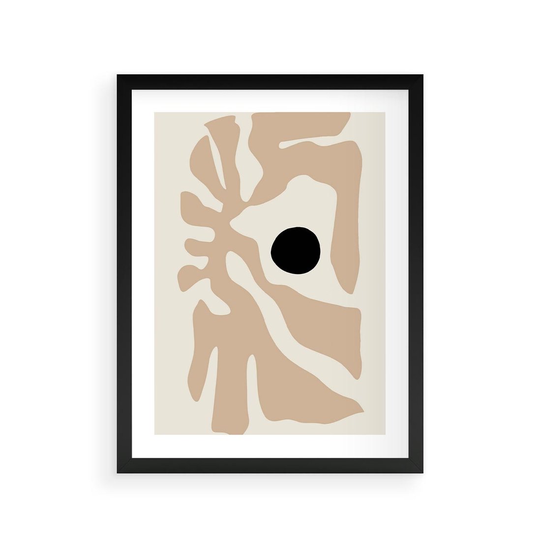 Plakat w ramie 30x40 - Eksploracja Abstrakcji - beżowa absrakcyjna kompozycja, czarny akcent - rama czarna