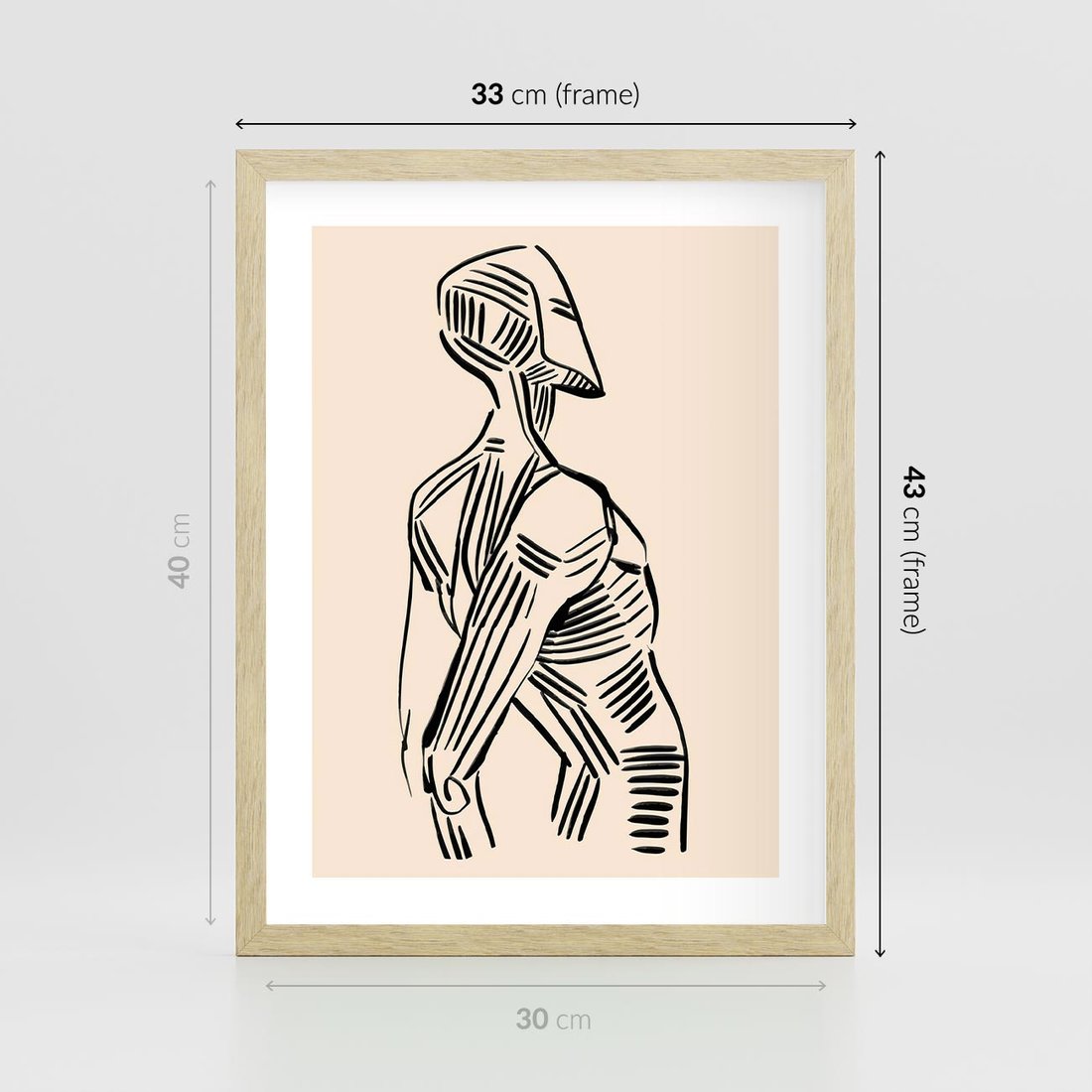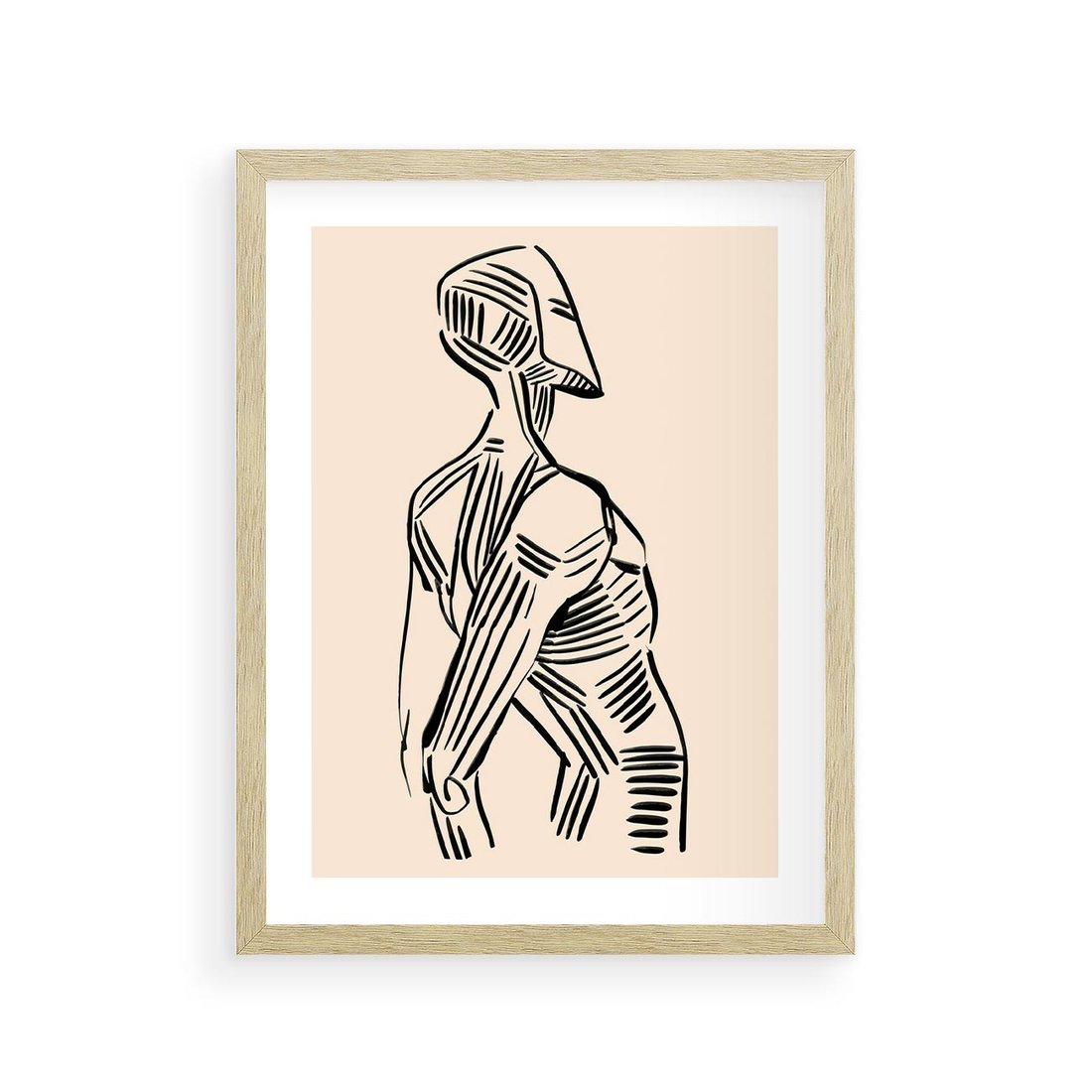 Ten czarno-biały szkic przedstawia abstrakcyjną postać w formie manekina. To artystyczne wyrażenie wprowadza do Twojej przestrzeni subtelność i estetykę, tworząc równocześnie interesujący akcent artystyczny.