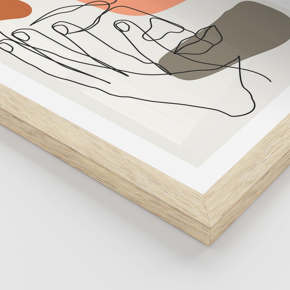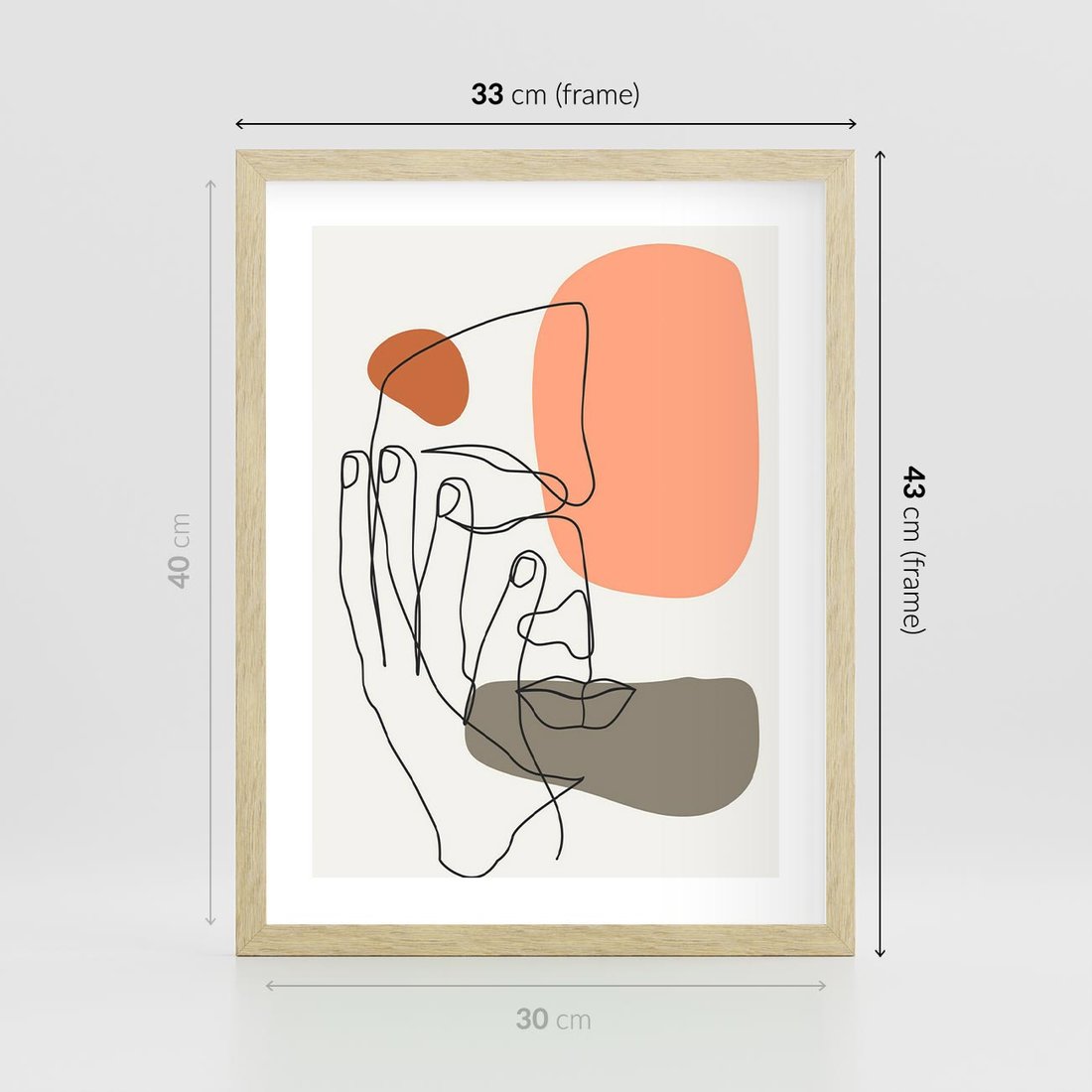 Plakat w ramie 30x40 - Ekspresja Kolorów: Szkic - one line szkic twarzy, kolorowe plamy - rama drewno