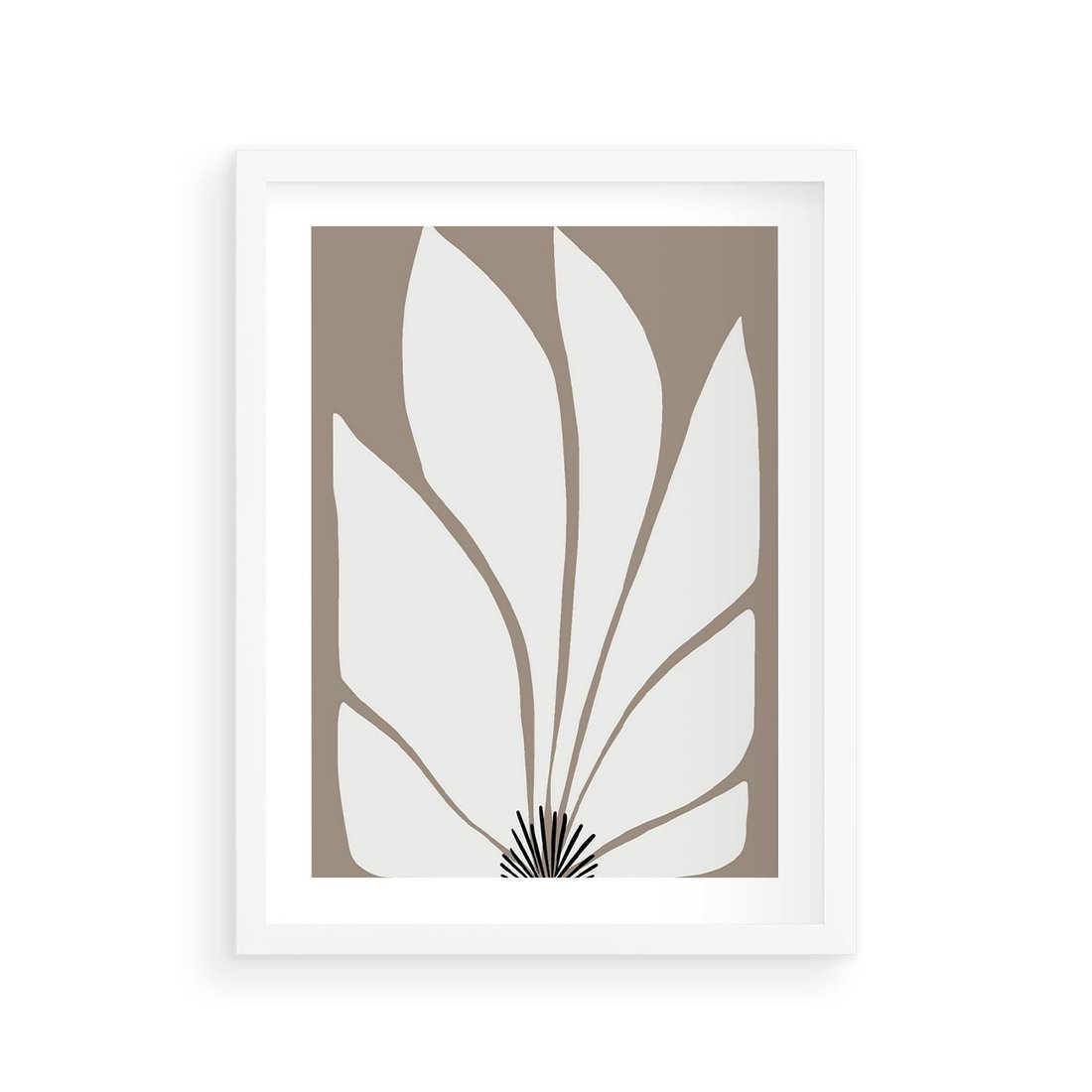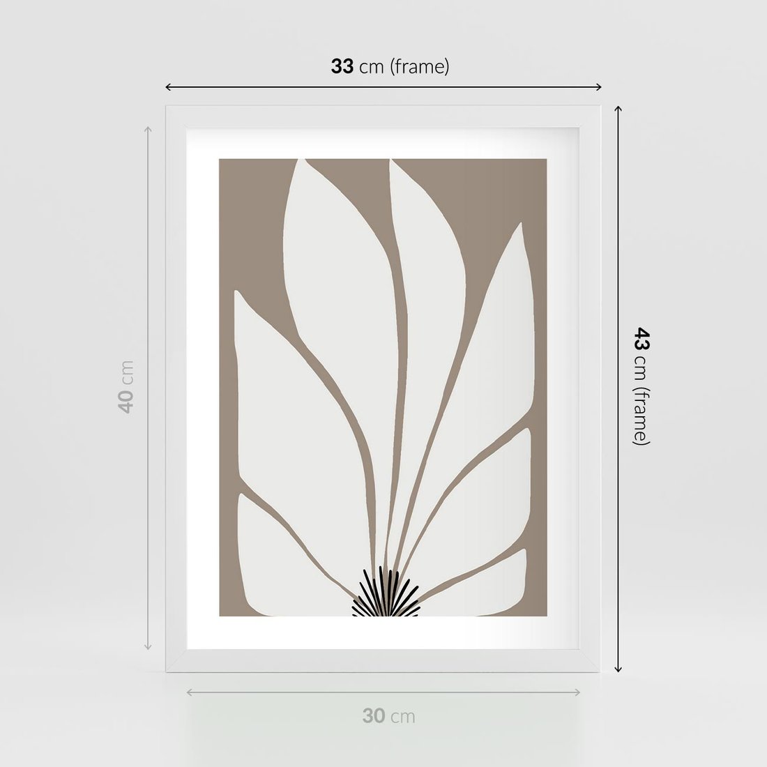 Plakat w ramie 30x40 - Ekspresyjne Kontury - abstrakcyjny kwiat, beże i brązy - rama biała