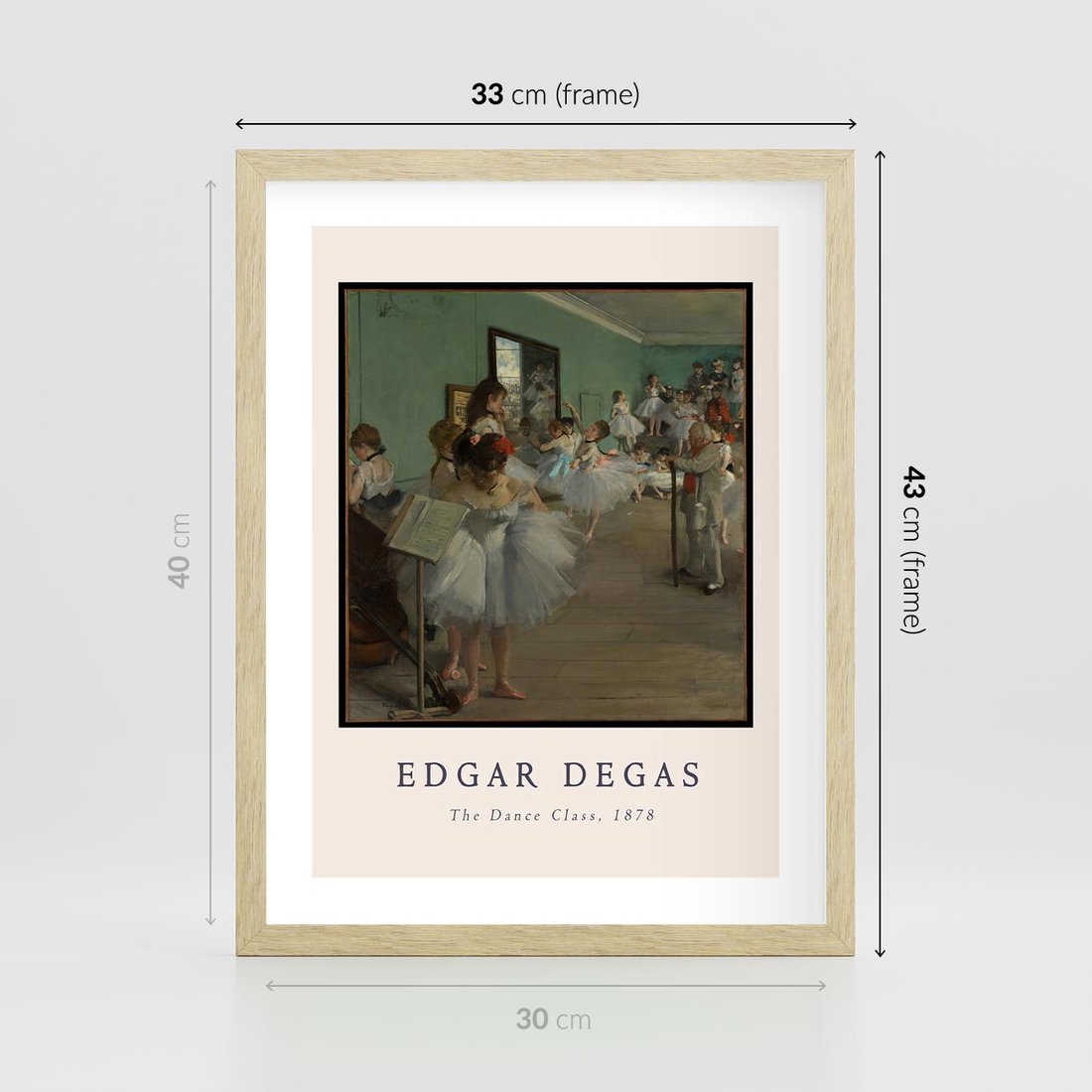 Na obrazie widoczna jest reprodukcja słynnego dzieła Edgara Degasa, przedstawiająca baletnice. Obraz zawiera także elementy typografii, co nadaje mu charakter plakatu. Dzięki swojemu tematowi i stylowi, ten plakat z reprodukcją obrazu Edgara Degasa doskonale pasuje do wnętrza o tematyce artystycznej lub klasycznej.
