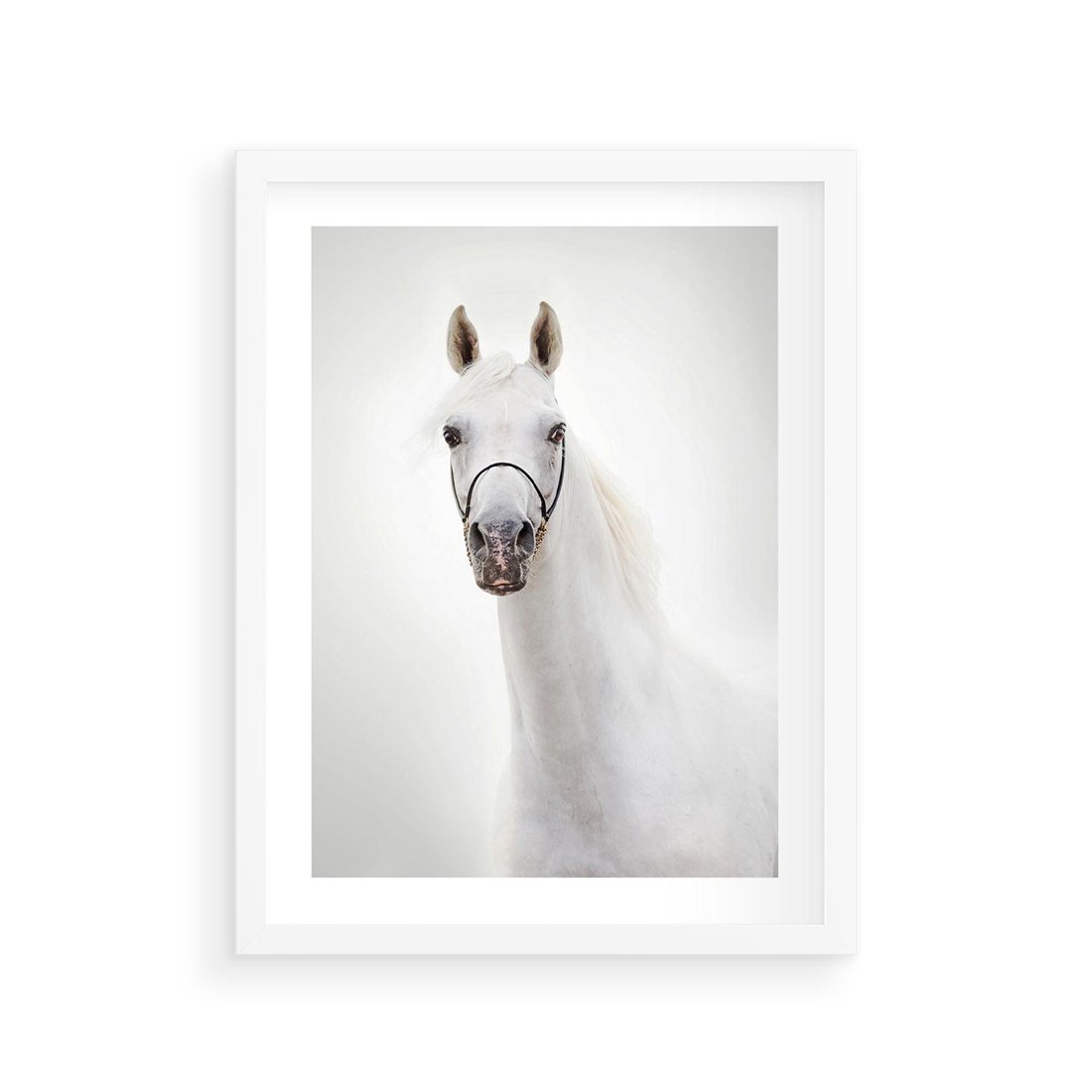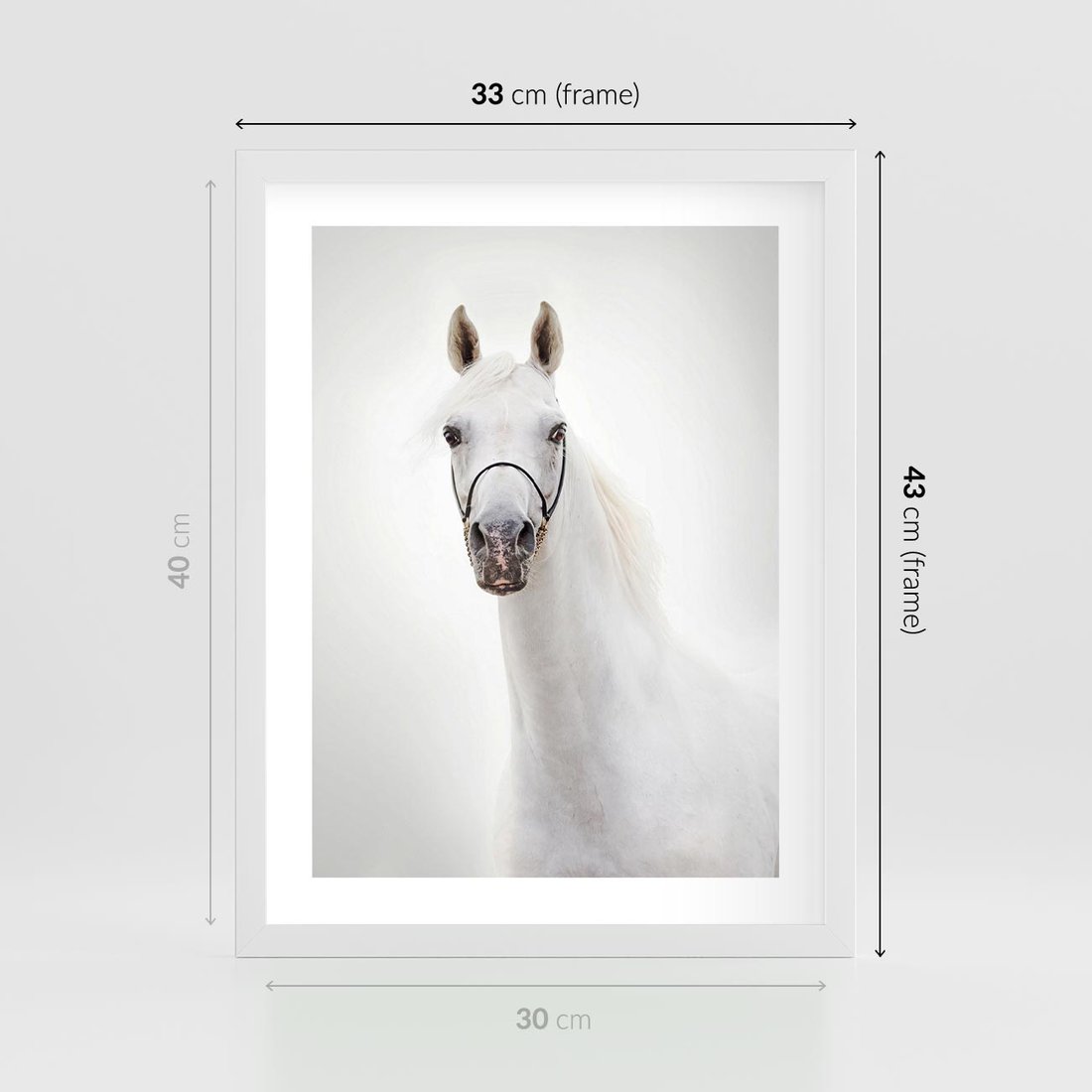 Plakat w ramie 30x40 - Elegancja białego konia - biały, koń - rama biała
