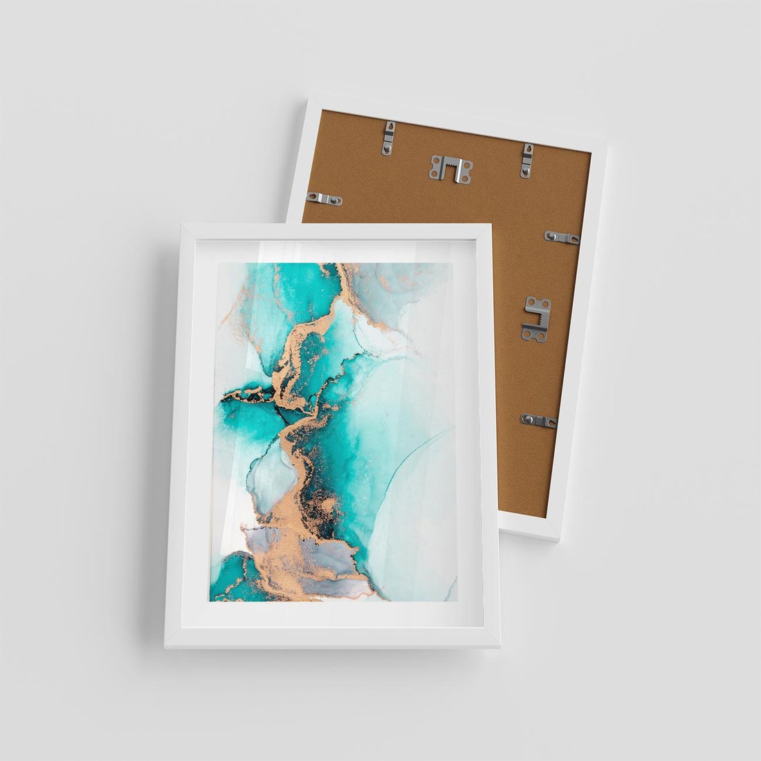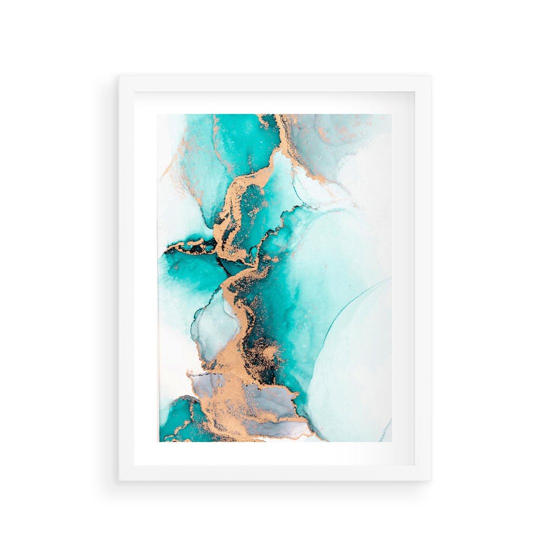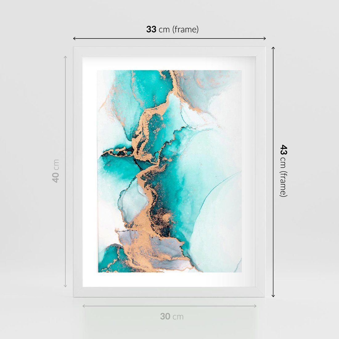 Plakat w ramie 30x40 - Elegancja i Subtelność - marmur, złoto - rama biała