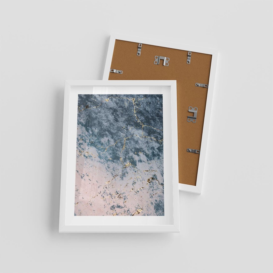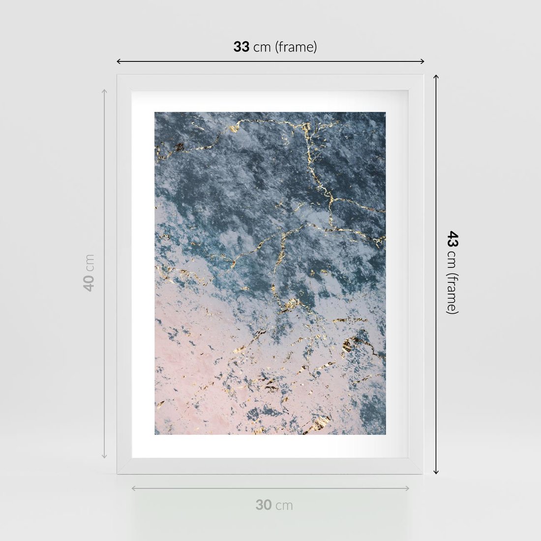 Plakat w ramie 30x40 - Elegancja i Wyrafinowanie - marmur, złoto - rama biała