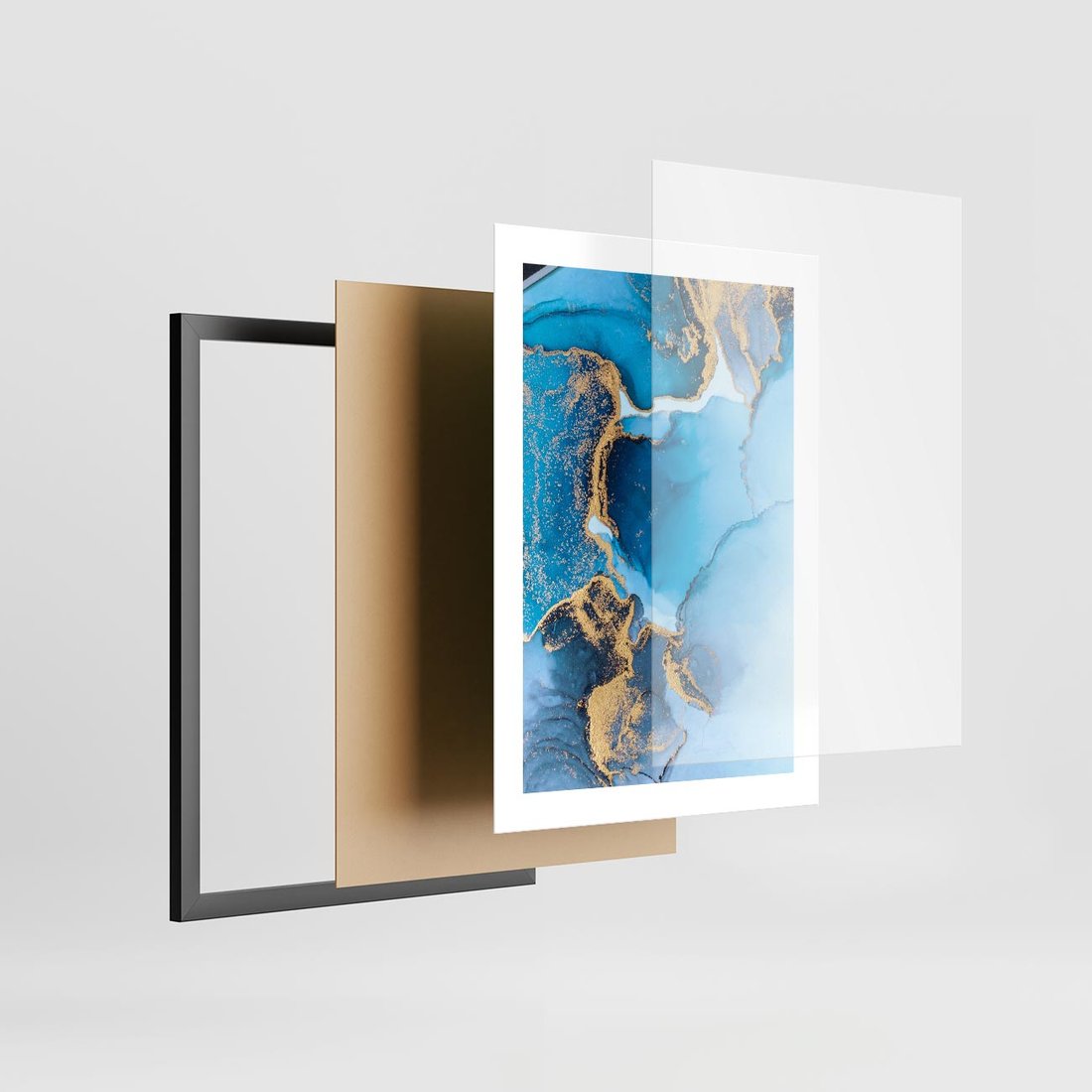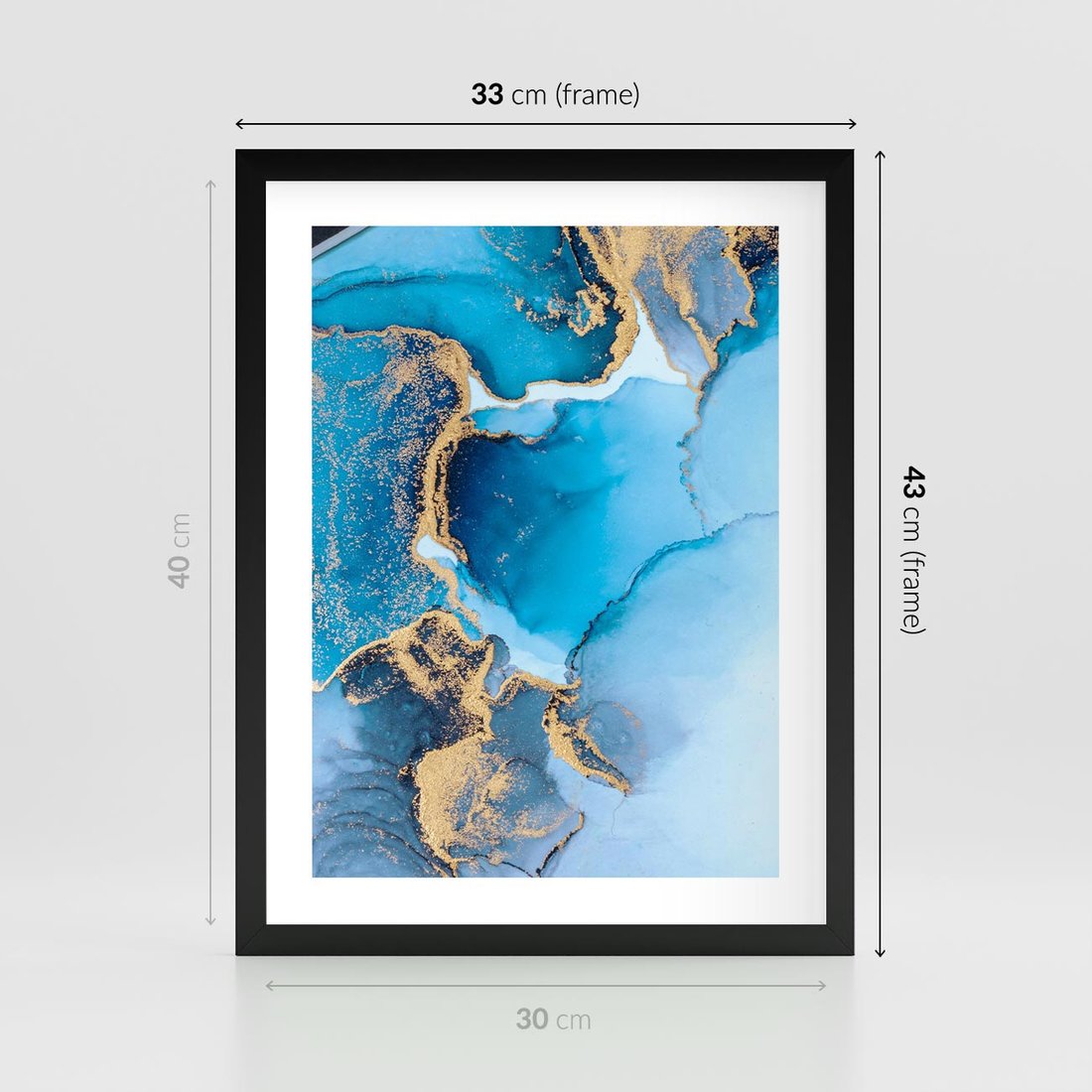 Plakat w ramie 30x40 - Elegancja i Wyrafinowanie - marmur, złoto - rama czarna
