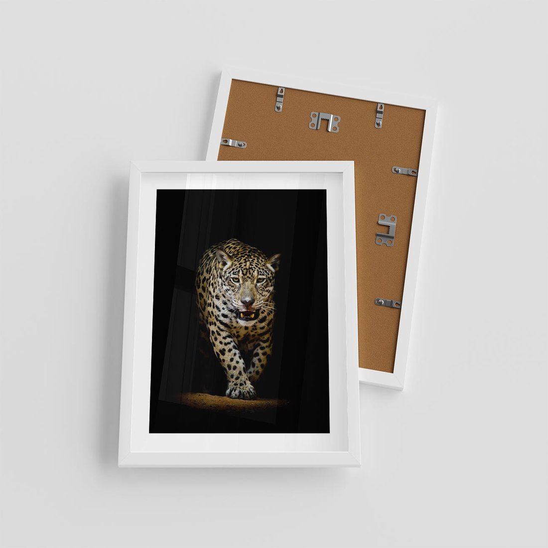 Ożyw swoje wnętrze tym uroczym obrazem przedstawiającym eleganckiego lamparta. Jego zwinną postawę, dzikie piękno i dynamiczny ruch tworzą fascynującą kompozycję. Ten obraz dodaje odczucia siły, odwagi i dzikiej natury, idealny dla miłośników dzikich zwierząt i osób pragnących wprowadzić do swojego domu atmosferę dzikiej elegancji.