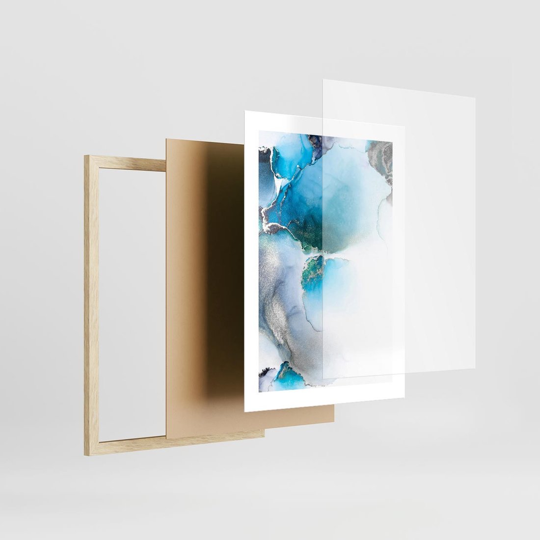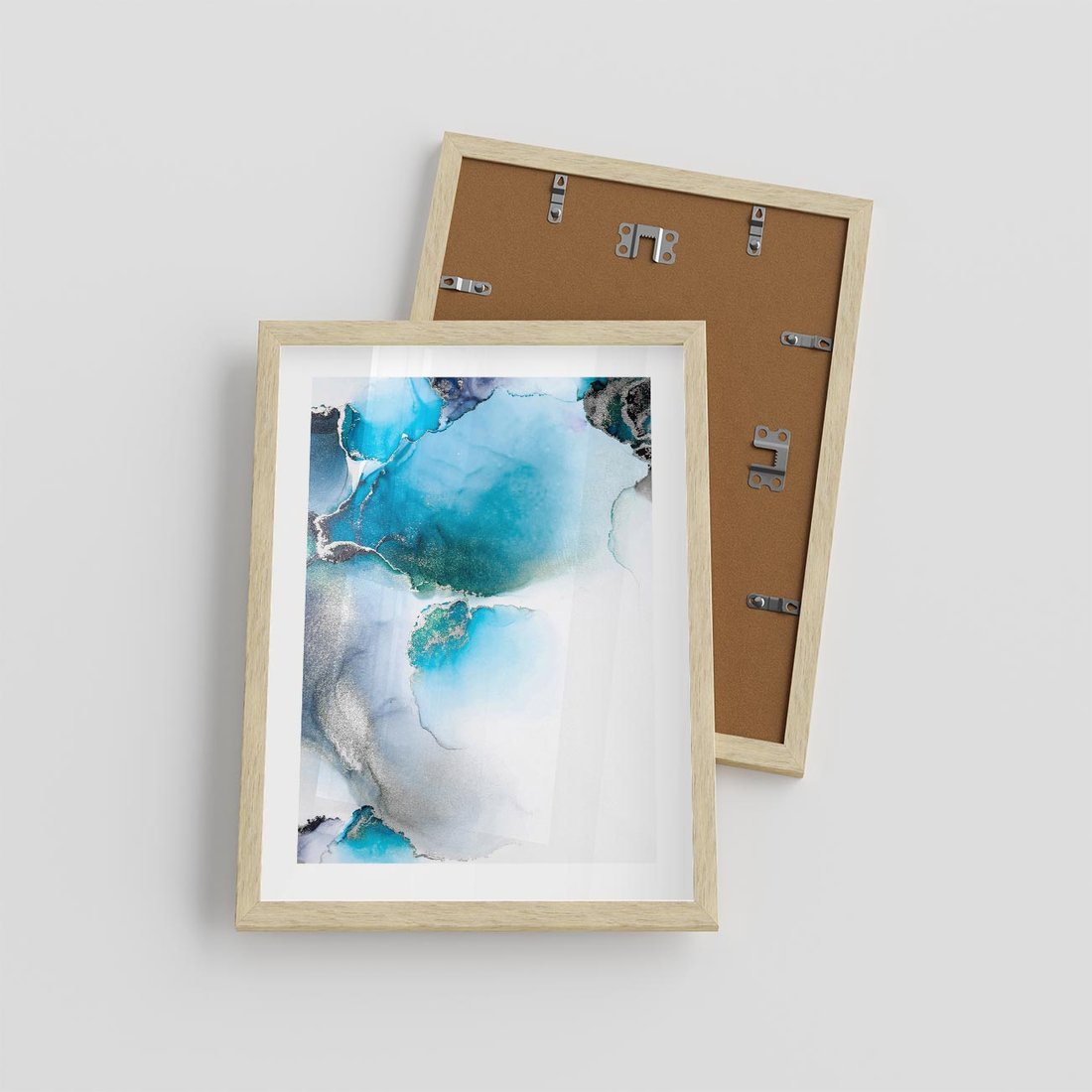 Plakat w ramie 30x40 - Elegancja Marmuru - marmur, błękit - rama drewno