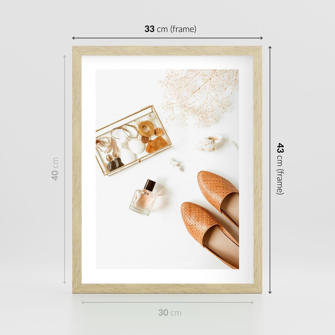 Plakat w ramie 30x40 - Elegancja w Szafie - modowa fotografia, buty - rama drewno
