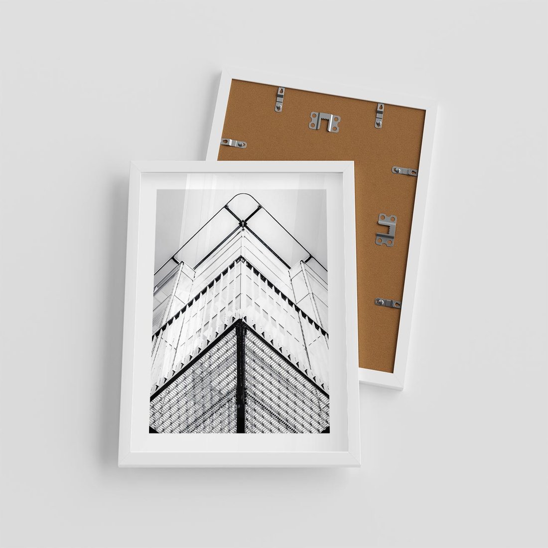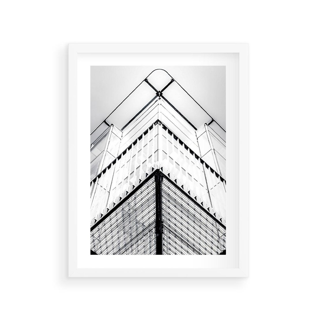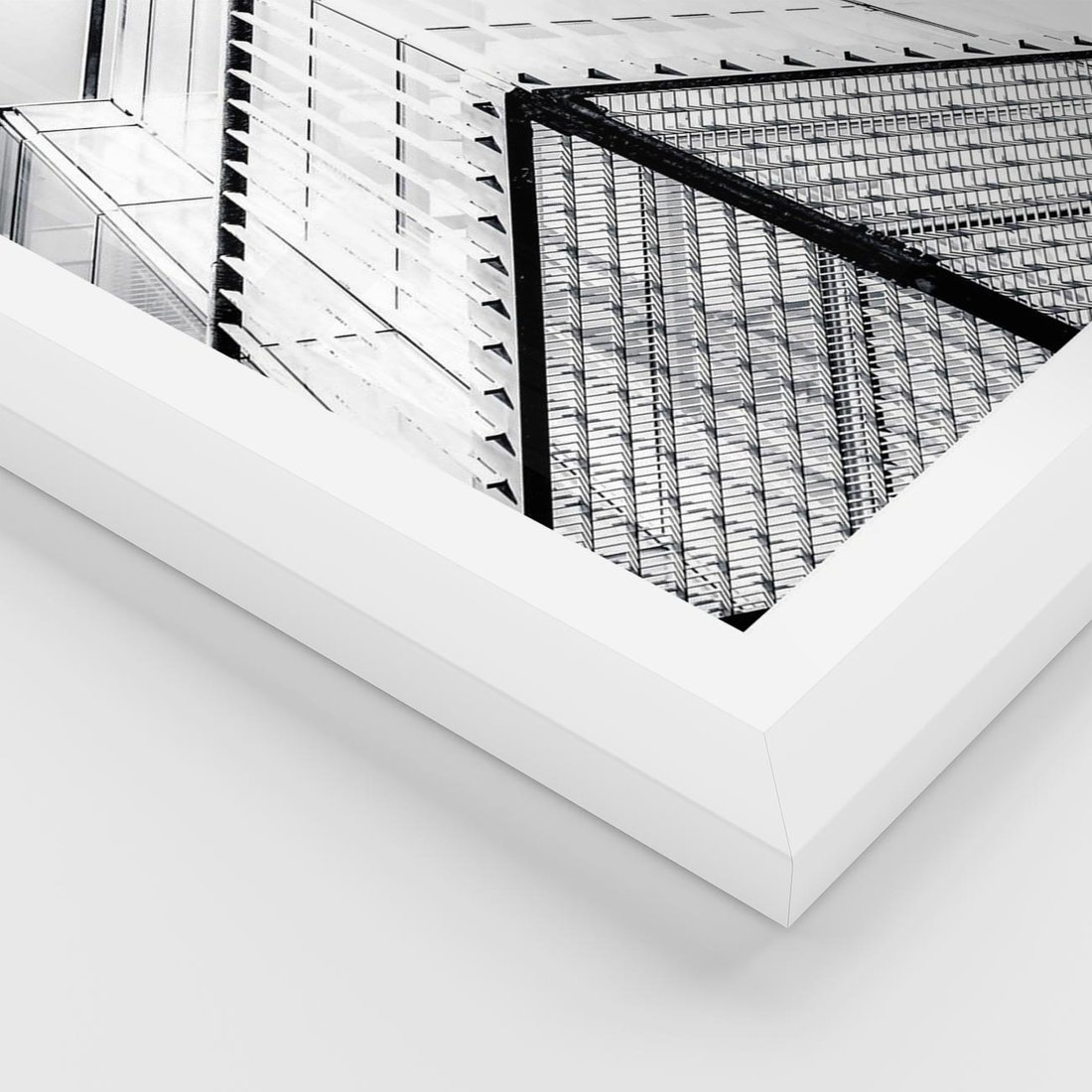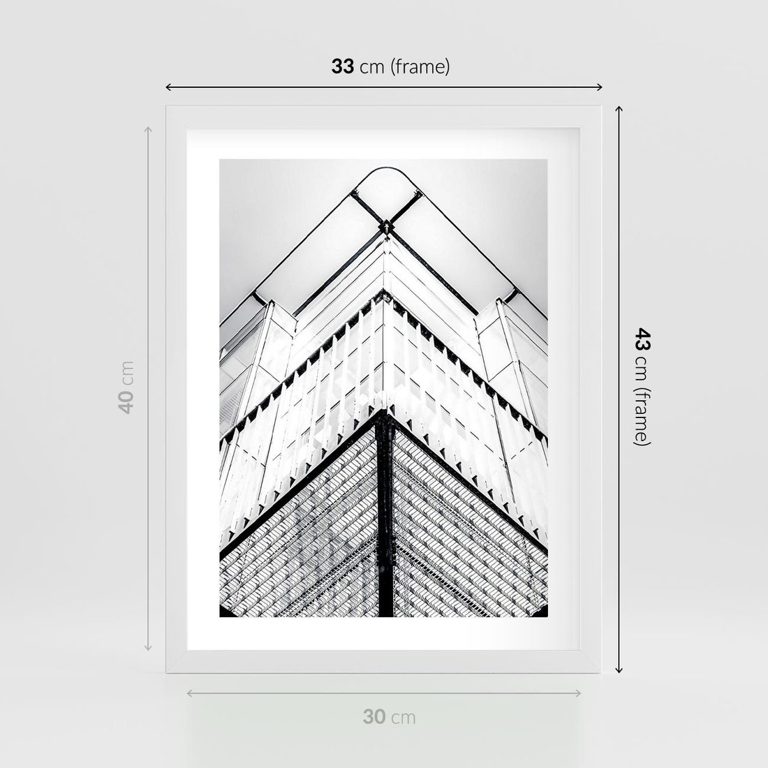 - Plakat w ramie 30x40 - Elegancja Współczesnej Architektury: Wieżowiec w Monochromii