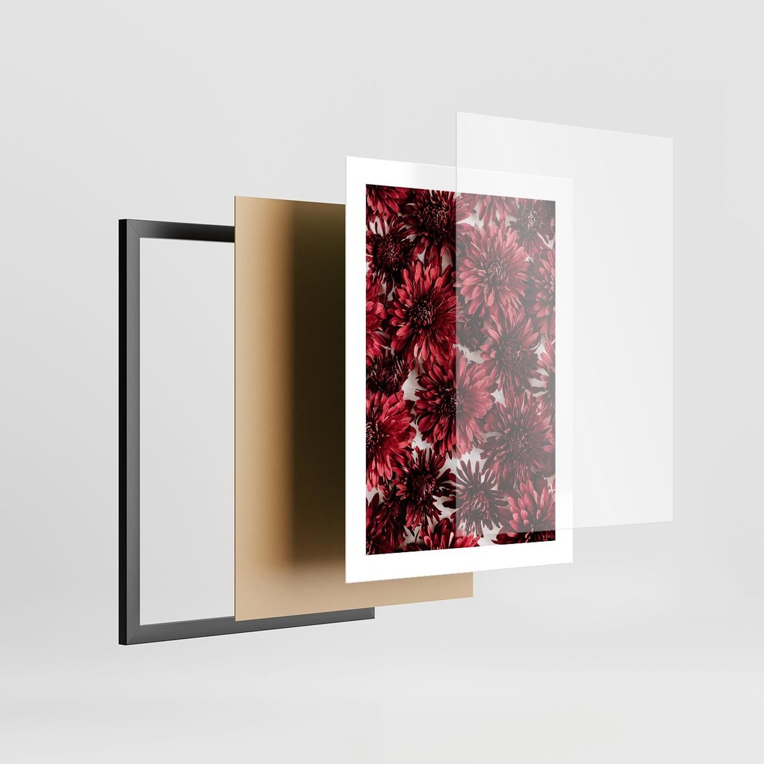 Plakat w ramie 30x40 - Energia Kwiatów - czerwone kwiaty, kompozycja - rama czarna