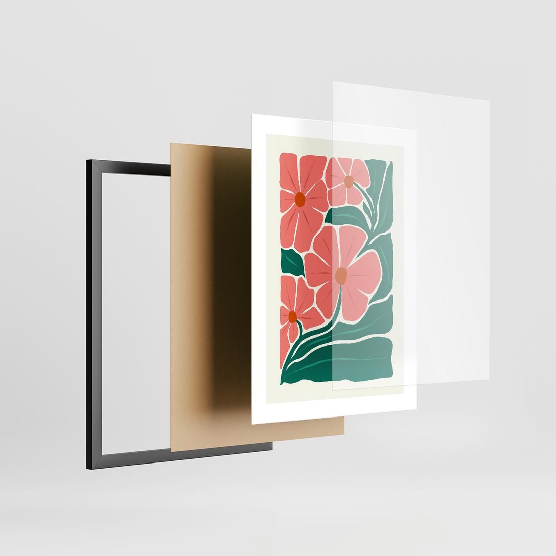 Ten plakat w minimalistycznym stylu przenosi nas w świat delikatnych kwiatów, ukazanych w pastelowej paletcie. Sztuka nowoczesna w swojej najczystszej formie, tworząca spokojną i urokliwą atmosferę.