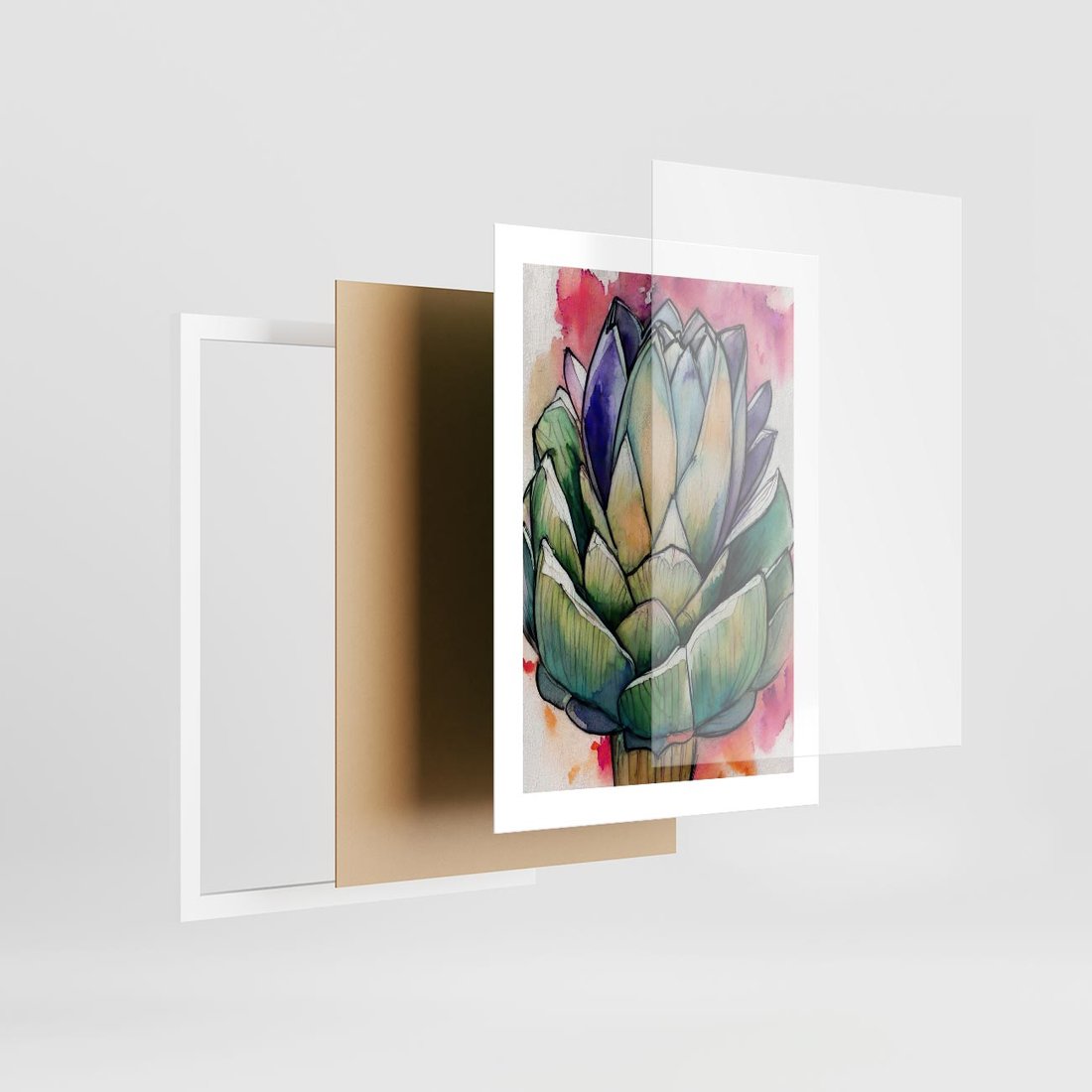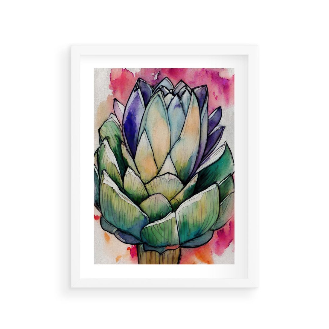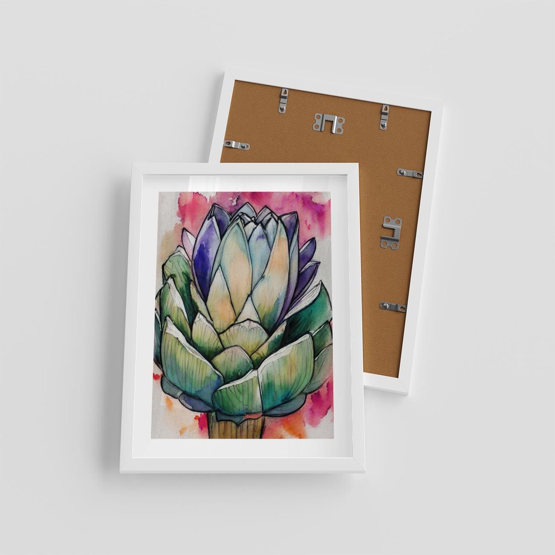 Ten abstrakcyjny obraz w technice akwareli przedstawia karczoch w sposób niekonwencjonalny i artystyczny. Artysta wykorzystuje delikatne przejścia kolorów i swobodne linie, aby stworzyć abstrakcyjny obraz, który jednocześnie może być źródłem inspiracji i zagadką dla widza. Technika akwareli dodaje delikatności i subtelności temu dziełu, tworząc wrażenie lekkości i przejrzystości. To doskonała dekoracja dla tych, którzy cenią sobie abstrakcyjną sztukę i wyjątkową estetykę roślin.