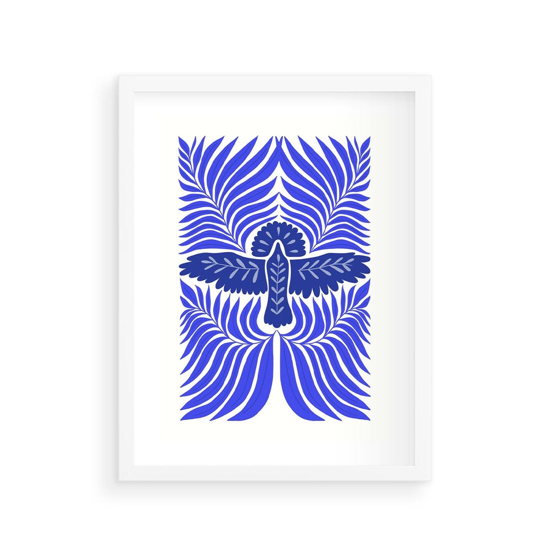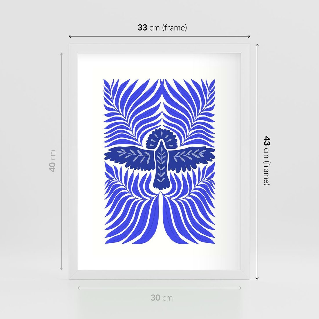 Plakat w ramie 30x40 - Etniczne Rekwizyty - etniczne roślinne wzory, granat - rama biała