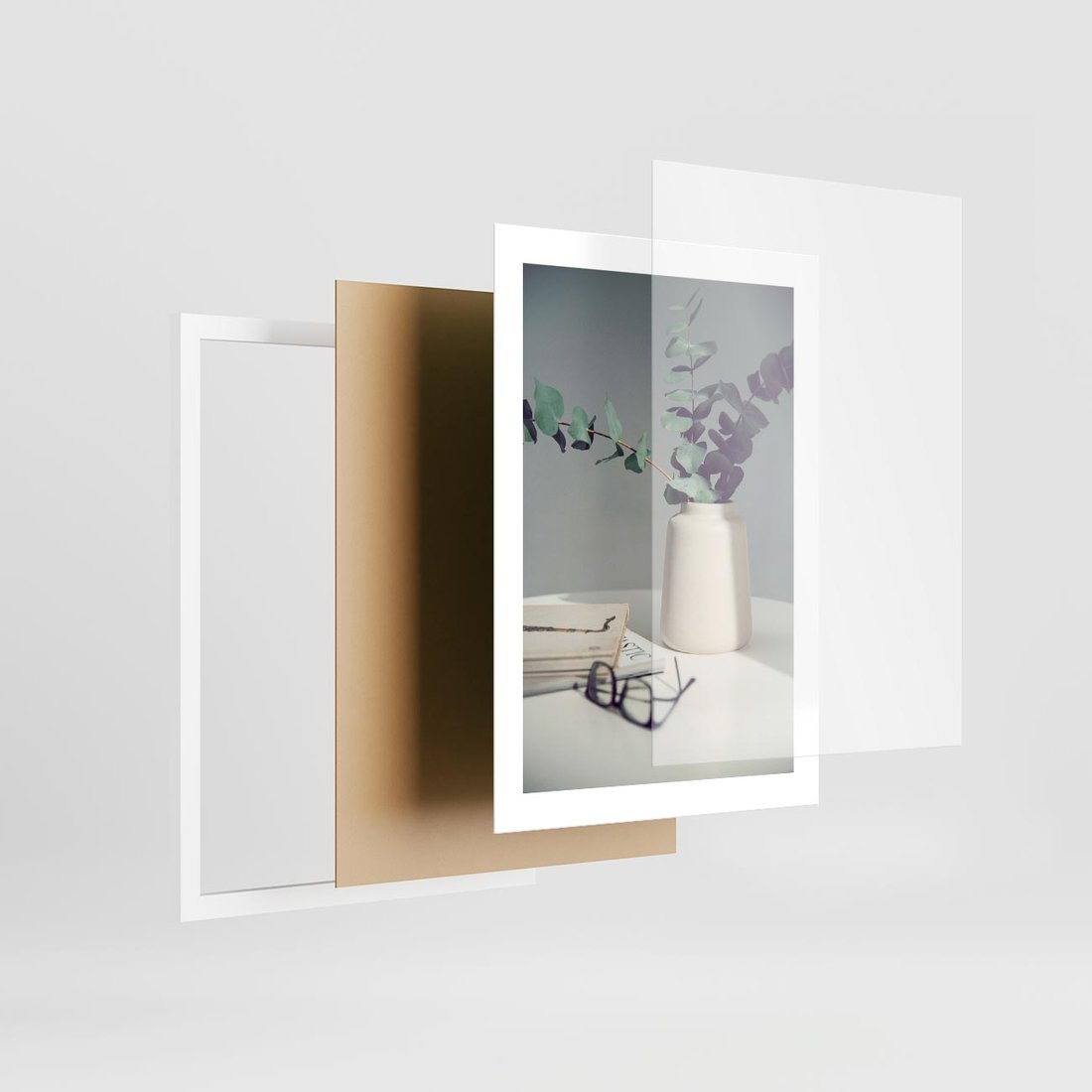 Obraz przedstawia kompozycję z liści eukaliptusa w wazonie, gazetą i okularami. Ta aranżacja oddaje atmosferę relaksu i czytania w spokojnym otoczeniu, doskonale pasując do wnętrz, które pragną wyrazić harmonię i spokój.