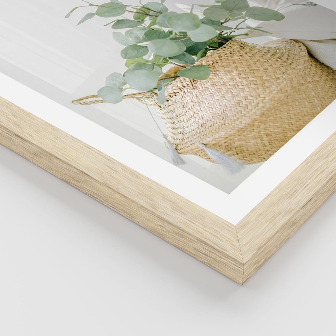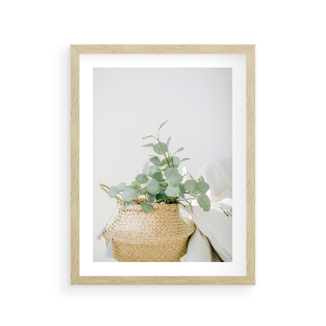 Plakat w ramie 30x40 - Eukaliptusowa Świeżość - eukaliptus, liście w koszu z wikliny - rama drewno