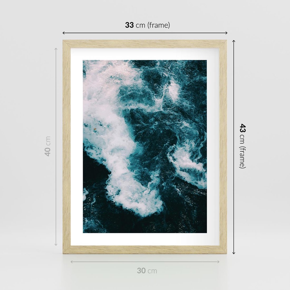 Plakat w ramie 30x40 - Fale w Odcieniach Turkusu - ocean, fale - rama drewno