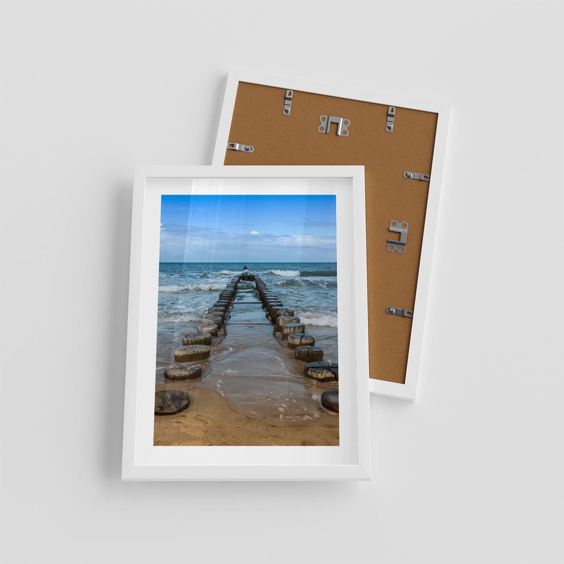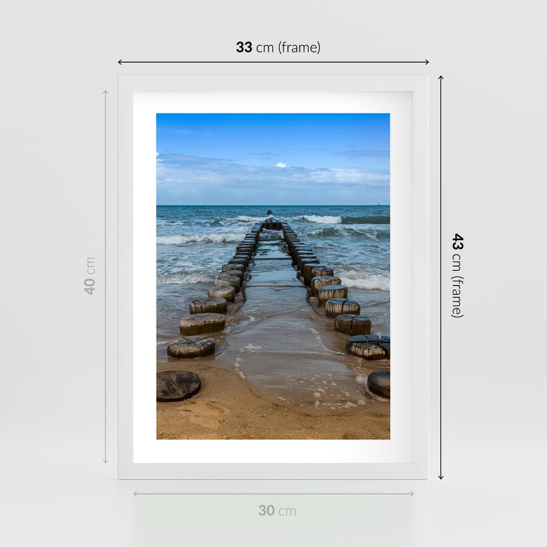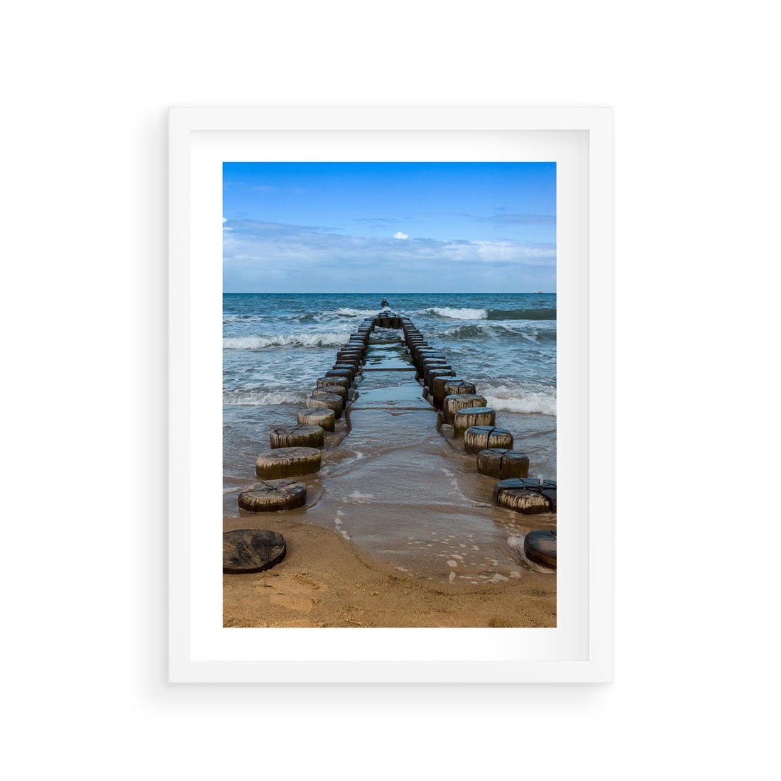 Plakat w ramie 30x40 - Falochron na brzegu morza - falochron, morze - rama biała